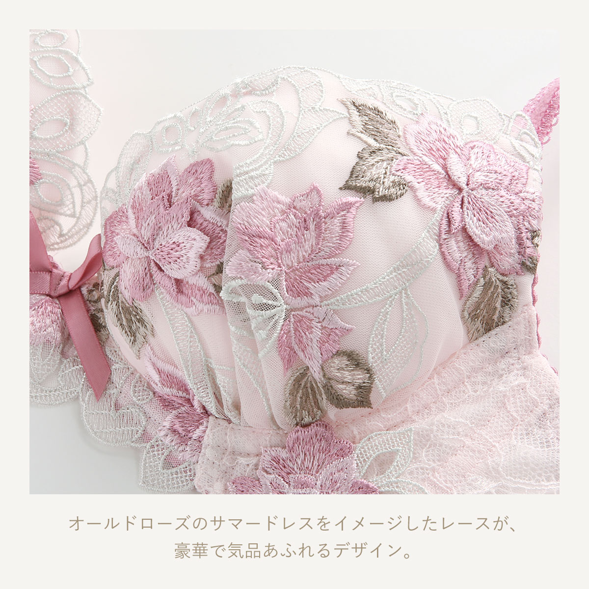 アンダーベルトは下辺のスカラップがキュートな繊細なレースを使用し、後ろ姿もフェミニンに。オールドローズの花言葉『優美』にふさわしい大人の女性にぴったりなシリーズです。日常のふとしたたたずまいも、美しいものへと変えてしまうようなアイテムになれますように。コレクションでのトータルコーディネイトがおすすめです。