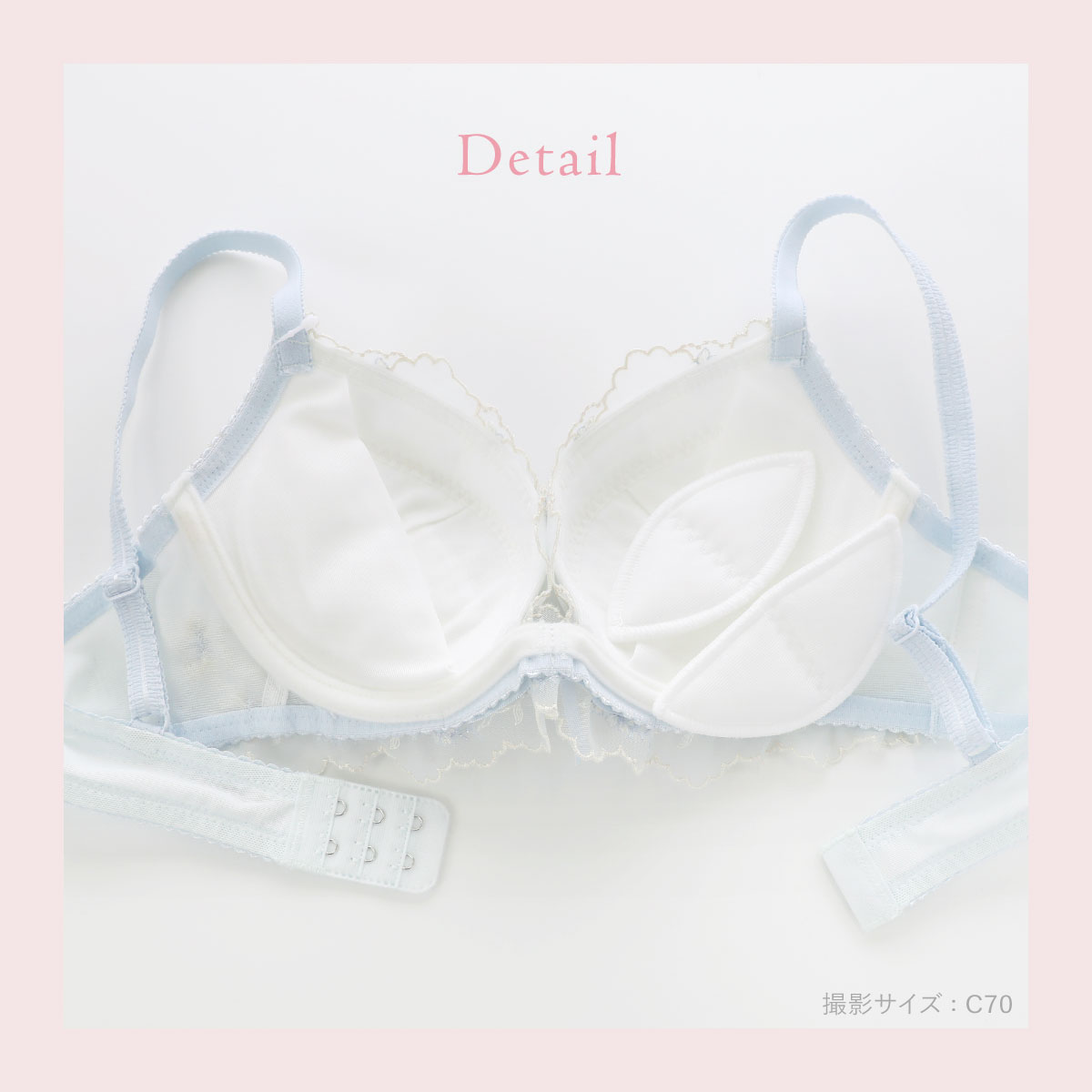 | 仕 様 | ・ホックの数:2段3列 ・3/4カップ ・パッド+サイドパッドのWパッド仕様 ・パッド取外し:両方可能 ・肩紐取外し:不可 ・ワイヤー入り ・サイドボーン:あり ・リサマリミラクル谷間ブラ
