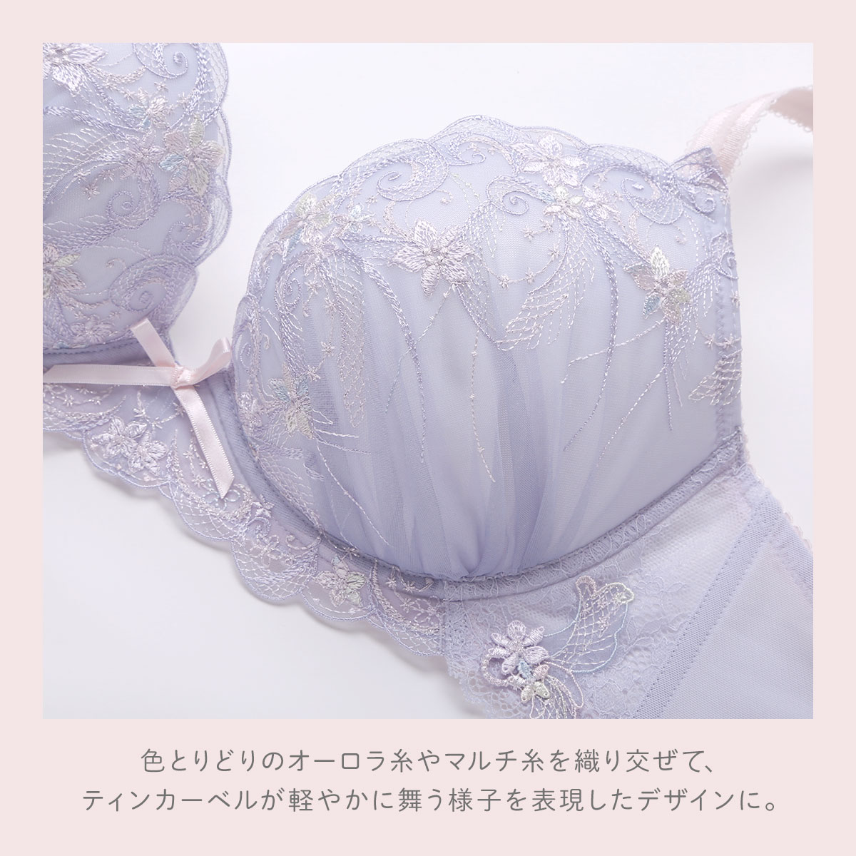 物語に登場する妖精「ティンカーベル」をモチーフにした「コリンナ」コレクション。くるくると曲線を描く羽で、ティンカーベルが軽やかに舞う様子を表現しています。色とりどりのオーロラ糸やマルチ糸を織り交ぜることで、妖精の光の粒子が放つ、夢のような輝きを演出。身に着けるだけでときめきの魔法をかけられるような、光の角度によって表情を変える繊細なきらめきのレースがロマンティック。