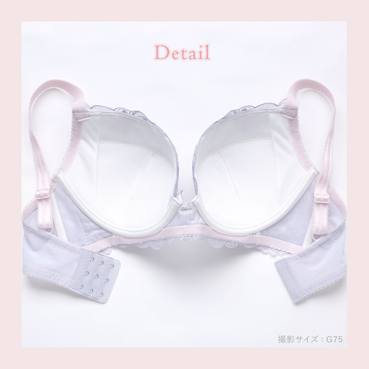 | 仕 様 | ・ホックの数:3段3列 ・3/4カップ ・パッドなし、パッドポケットあり ・肩紐取外し:不可 ・ワイヤー入り ・サイドボーン:あり ・グラマーブラ(サイドすっきりタイプ)