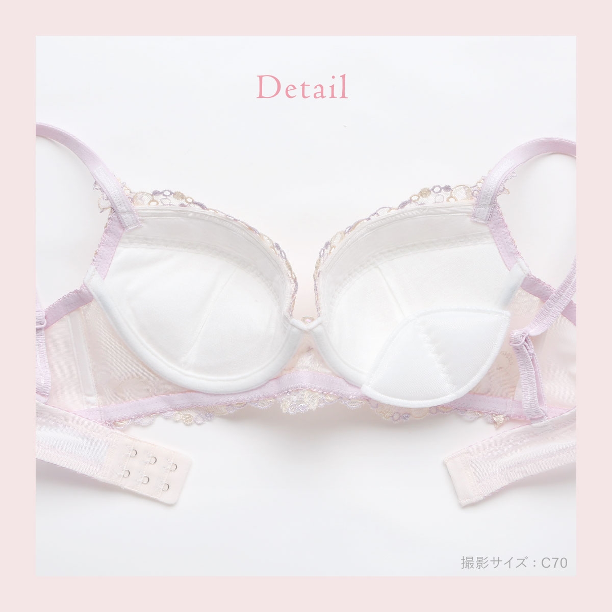 | 仕 様 | ・ホックの数:2段3列 ・3/4カップ ・パッド取外し:可能 ・肩紐取外し:不可 ・ワイヤー入り ・サイドボーン:あり ・スウィートリッチ