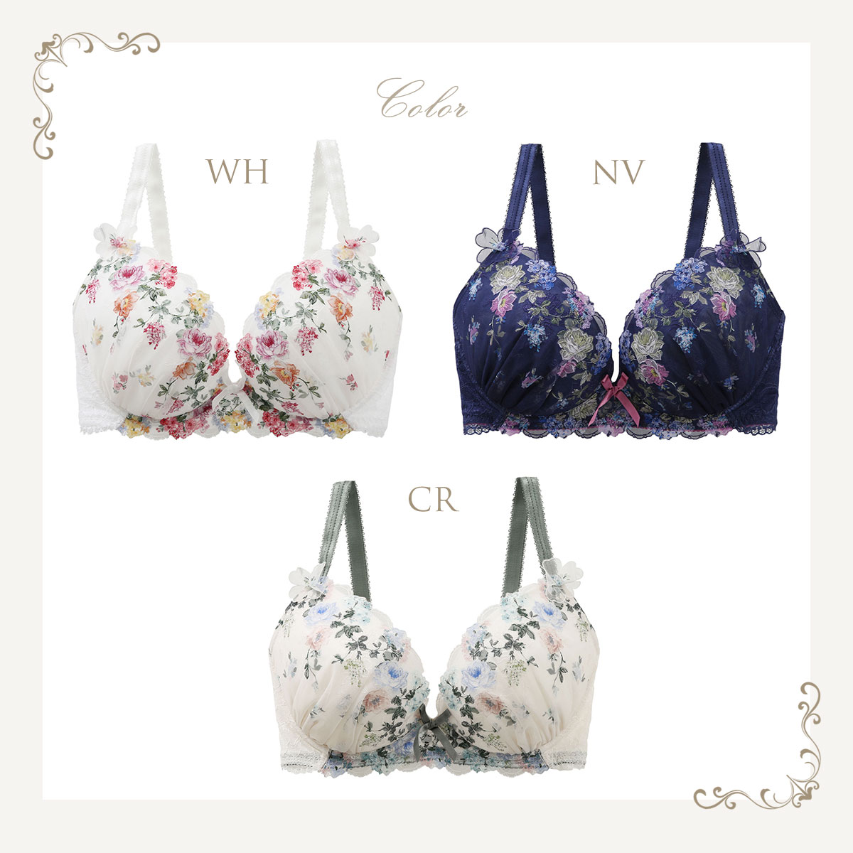 | 仕 様 | ・ホックの数:3段3列 ・3/4カップ ・パッドなし、パッドポケットあり ・肩紐取外し不可 ・ワイヤー入り ・サイドボーン:あり ・グラマーブラ V Make Type(浅型タイプ) ※生地の使用部分により、柄の出方が異なる場合がございます。予めご了承ください。 |