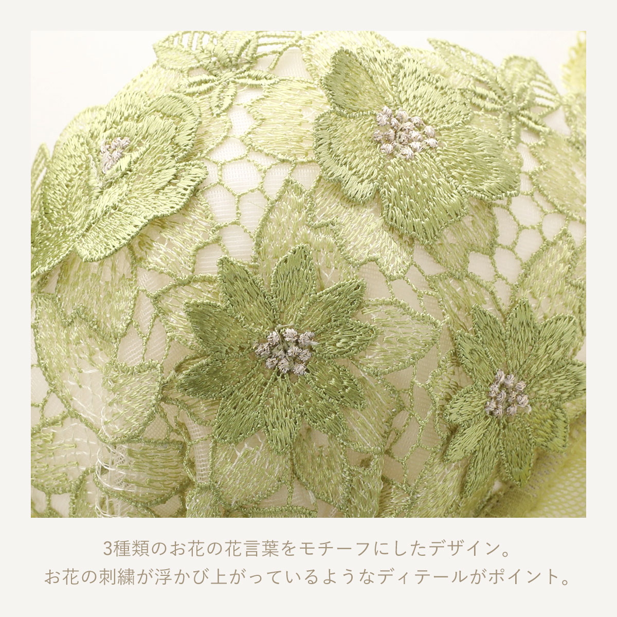 3種類のお花の花言葉をモチーフにしたリサマリレーヌ「セリーナ」コレクション。統一されたカラーの中に、お花の刺繍が浮かび上がっているようなディテールがポイントです。