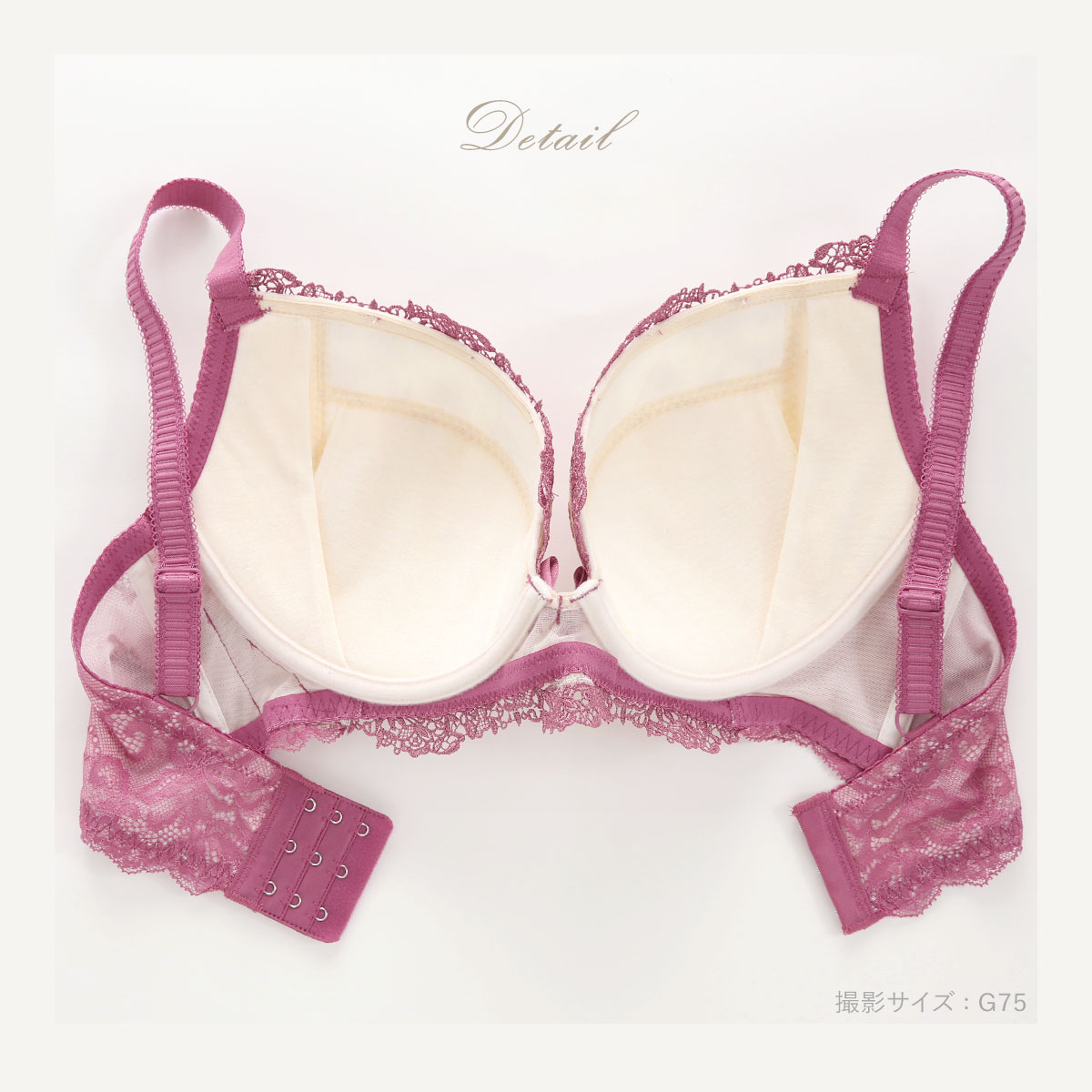 前中心が低いワイヤーとカップのサイドパネルで、バストを中央に寄せて美しいV字を演出する、V Make Typeです。グラマーブラは、カップサイドのパネルで脇流れを防ぎしっかり固定。また、カップ中央部分にボーンを入れることにより、バストをしっかり支えます。パッドポケット付きなので、お手持ちのパッドでボリュームを調整できます。ホックは3段3列なので安定感があります。