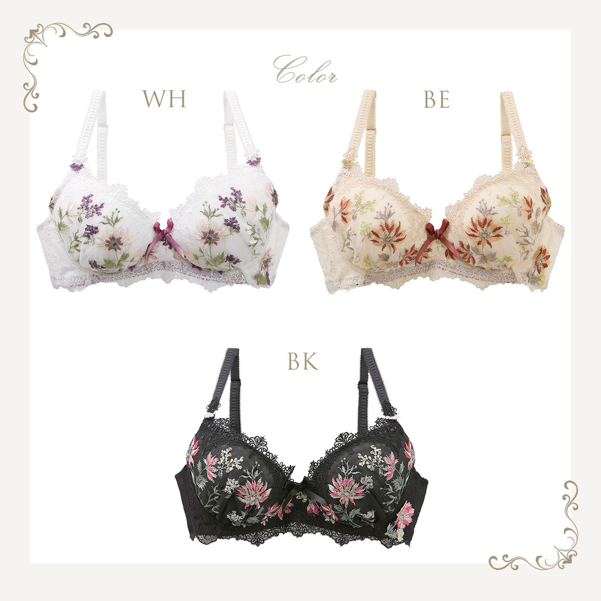 カラーWH-ホワイト、BE-ベージュ、BK-ブラック