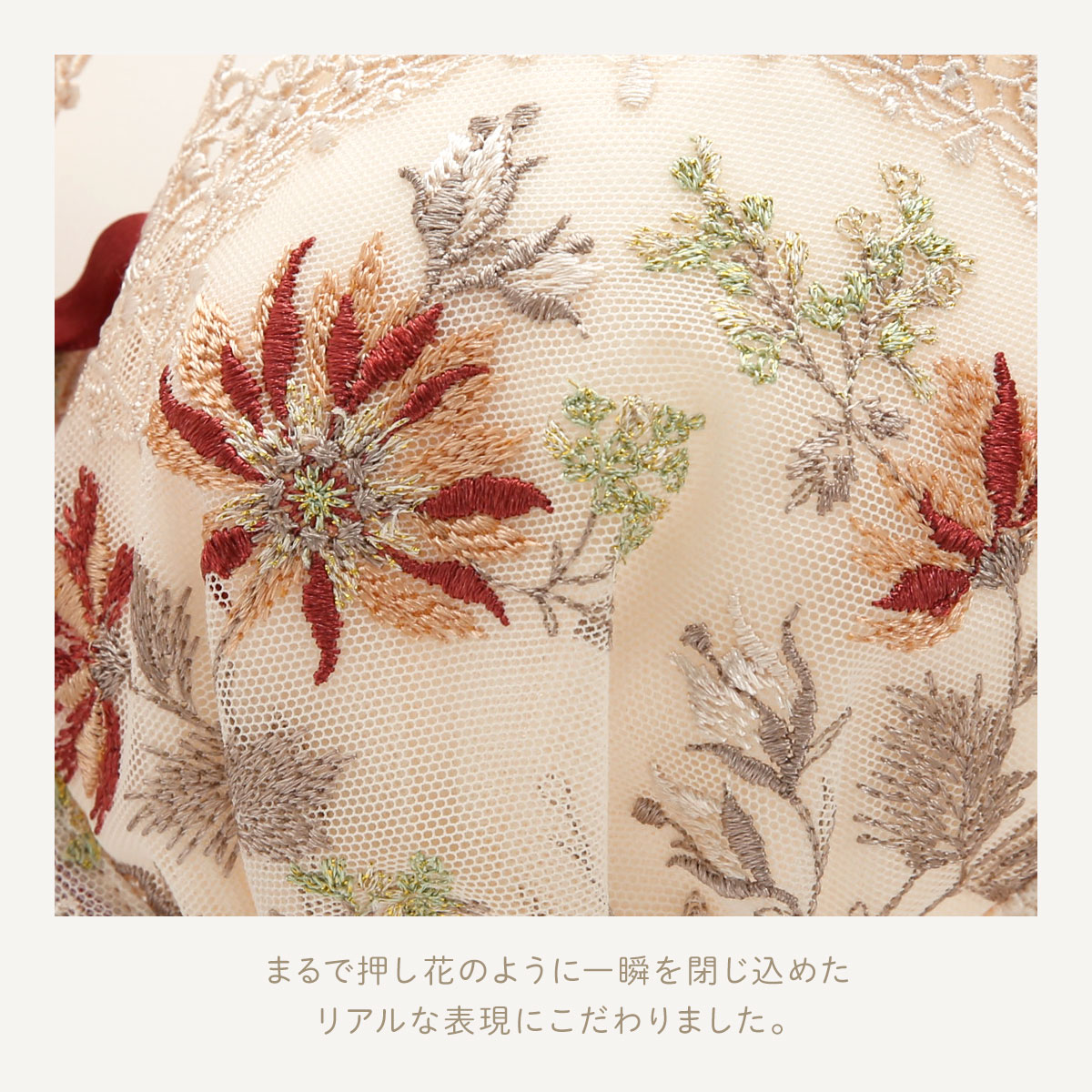 太陽の下で輝く、花や草木があふれる庭園をイメージしたデザインのリサマリレーヌ「フレデリカ」コレクション。メインのお花はワイルドフラワーがモチーフ。まるで押し花のように一瞬を閉じ込めたリアルな表現にこだわりました。