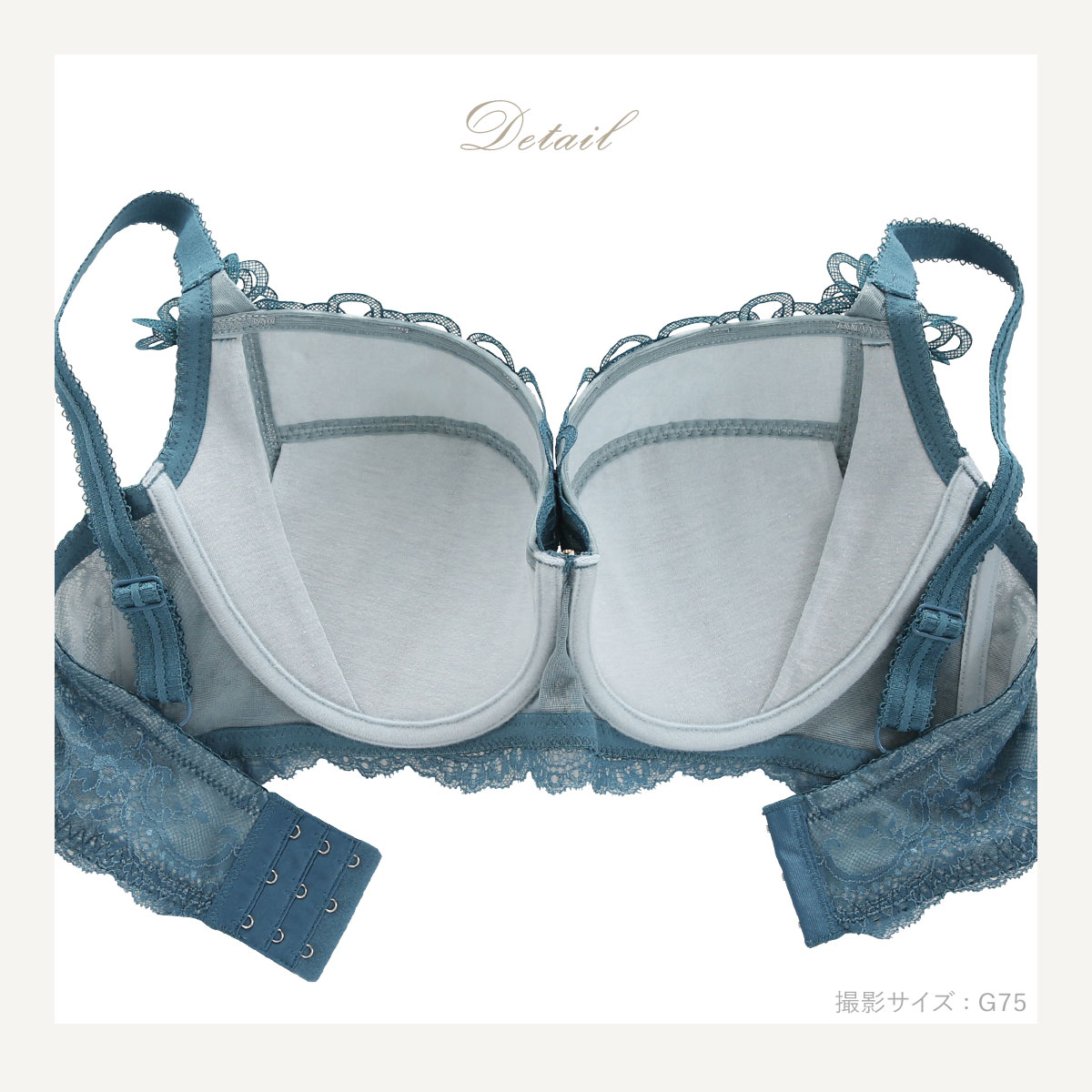 | 仕 様 | ・ホックの数:3段3列 ・3/4カップ ・パッドなし、パッドポケットあり ・肩紐取外し不可 ・ワイヤー入り ・サイドボーン:あり ・グラマーブラ D Make Type