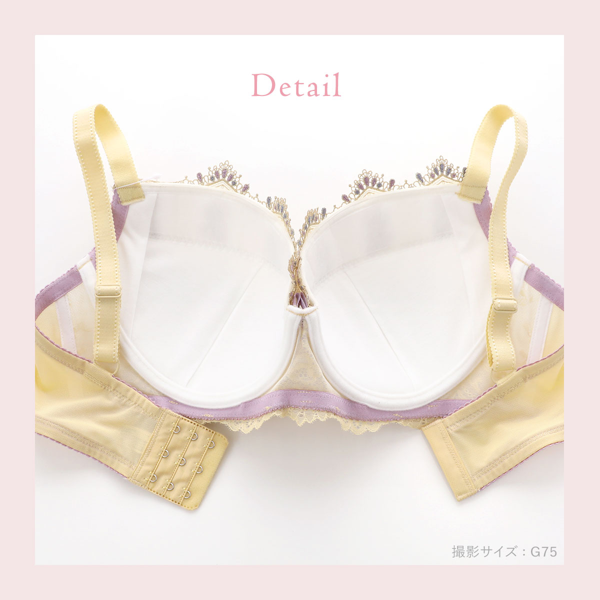 ボリュームのあるバストのためのグラマーブラ(バストアップタイプ)です。カップサイドのパネルで脇流れを防ぎしっかり固定。また、カップ中央部分にボーンを入れることにより、バストをしっかり支えてくれます。パッドポケット付きなので、お手持ちのパッドでボリュームを調整できます。ホックは3段3列なので安定感があります。