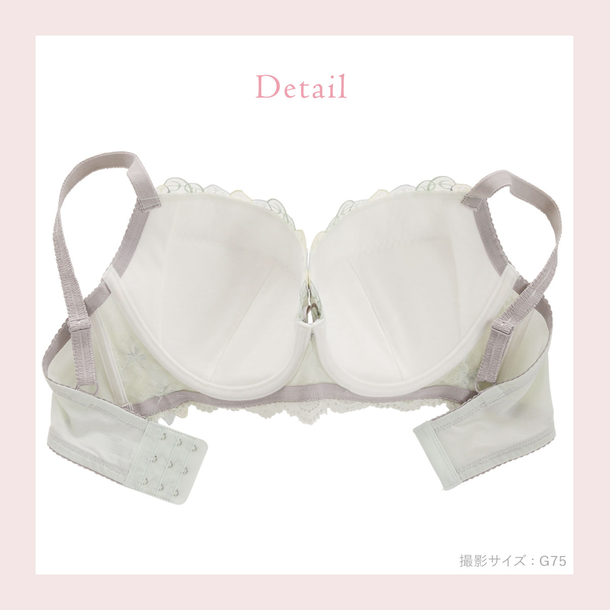 ボリュームのあるバストのためのグラマーブラ(バストアップタイプ)です。カップサイドのパネルで脇流れを防ぎしっかり固定。また、カップ中央部分にボーンを入れることにより、バストをしっかり支えてくれます。パッドポケット付きなので、お手持ちのパッドでボリュームを調整できます。ホックは3段3列なので安定感があります。