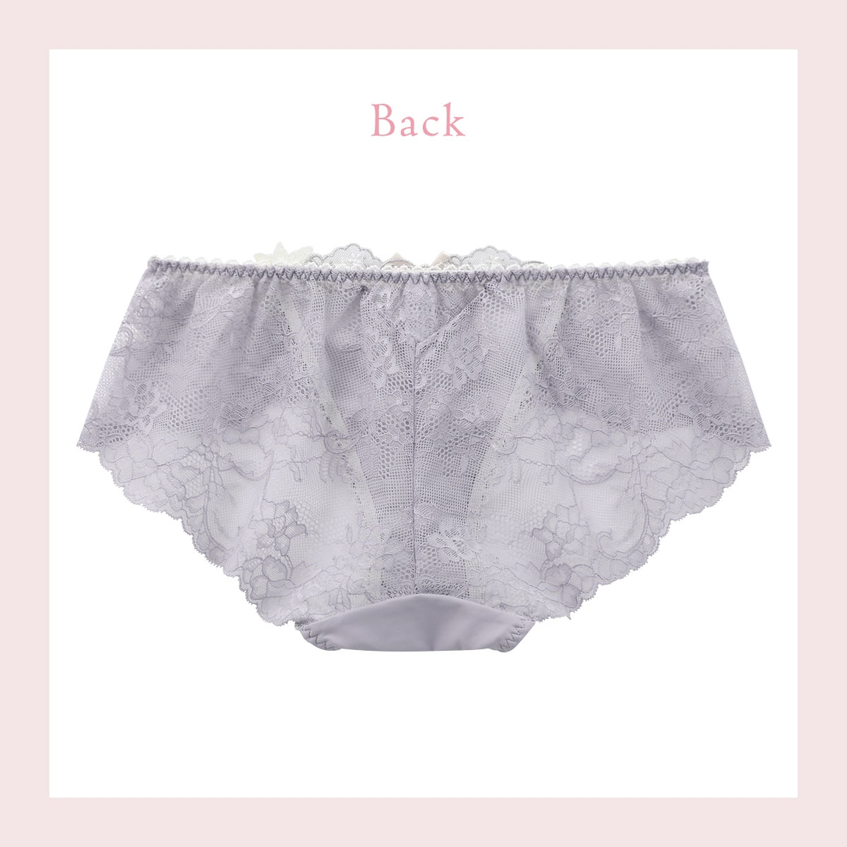 バック全体にレースをあしらったレースショーツです。繊細なレースを使用することで、美しい透け感を演出。伸縮性があるためヒップにほどよくフィットします。通気性が良く、快適にご着用いただけます。