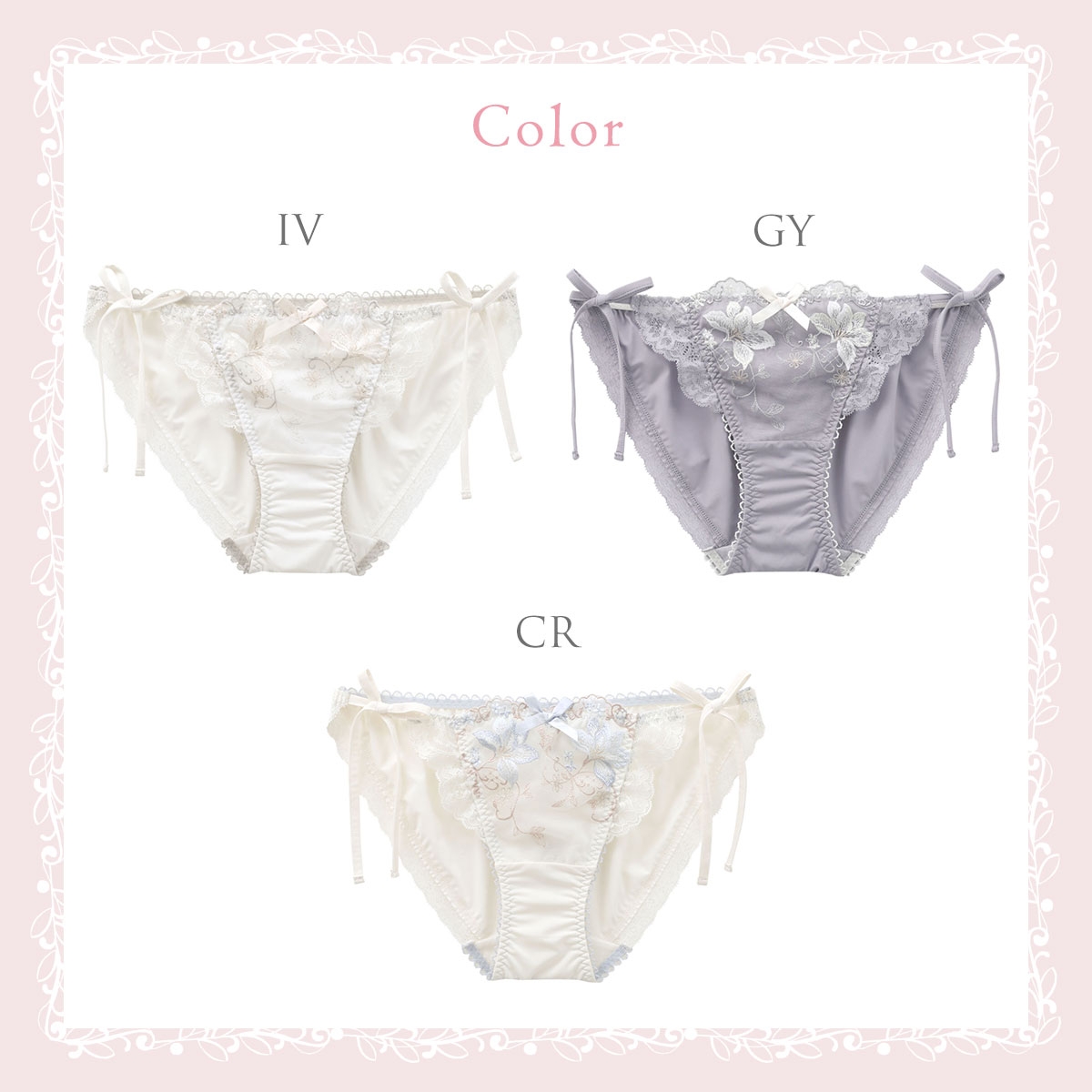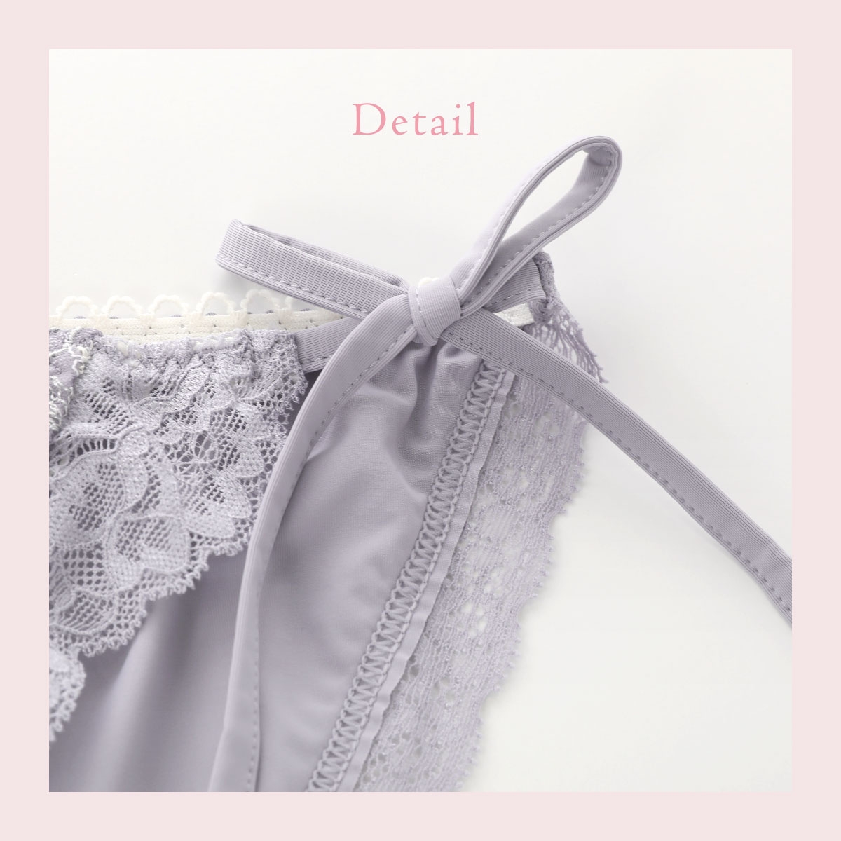 サイドをほどけるリボンで仕上げた、ちょっぴりセクシーなリボンショーツ。バックの身生地は縦横にストレッチ性があり、なめらかな肌ざわりではき心地が良いです。足口にはレースをあしらい、後ろ姿も華やかに演出しました。