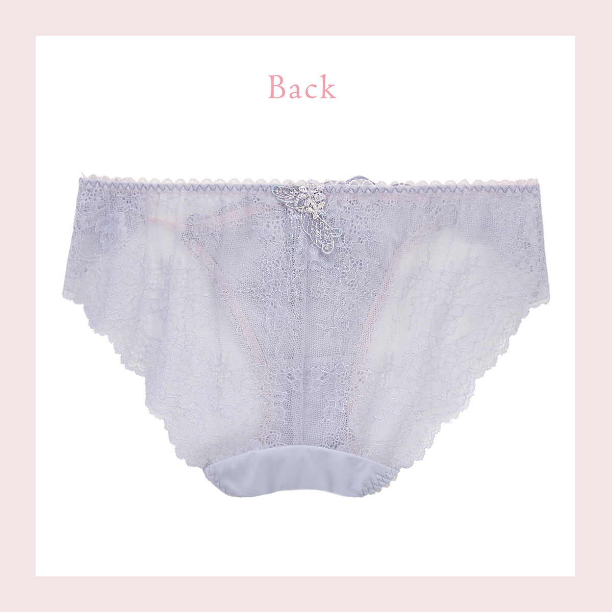 バック全体にレースをあしらったレースショーツ。繊細なレースを使用し、美しい透け感。伸縮性があるのでほどよくヒップにフィットします。通気性がよく、快適にご着用いただけます。