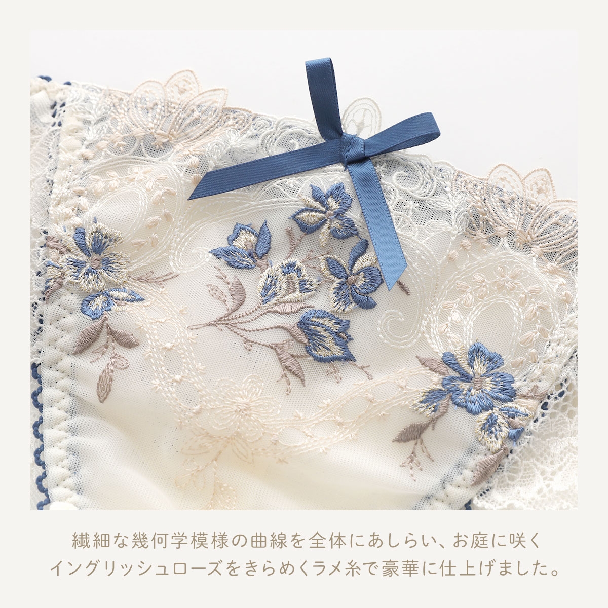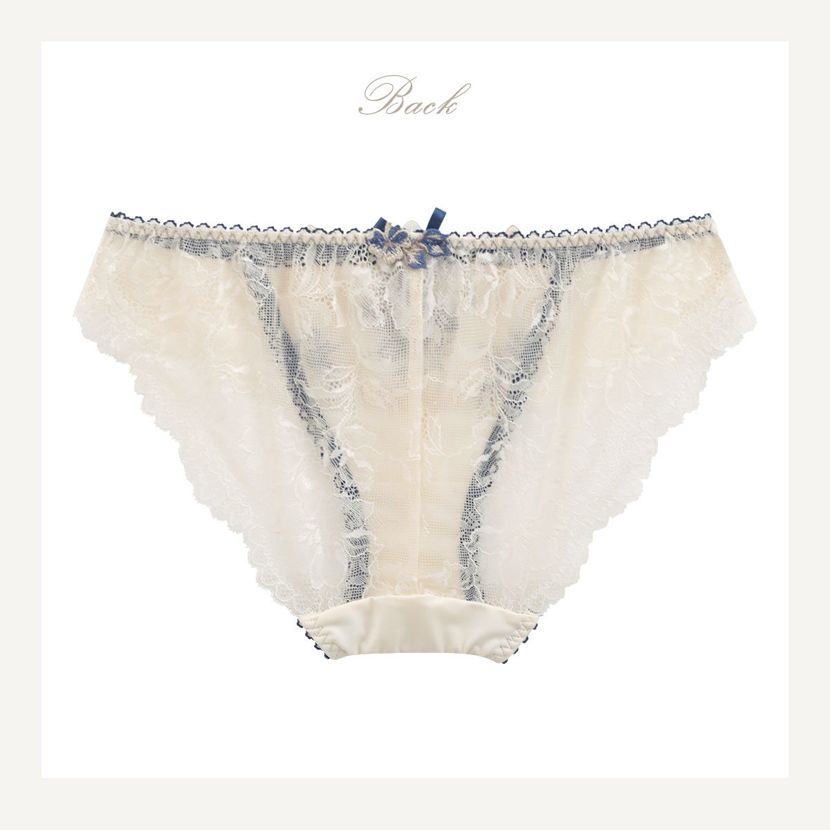 バック全体にレースをあしらったレースショーツ。繊細なレースを使用し、美しい透け感。伸縮性があるのでほどよくヒップにフィットします。