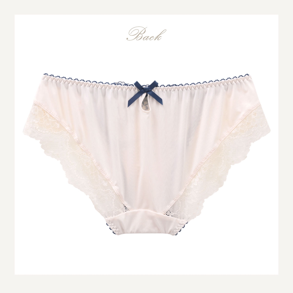 ベーシックなビキニタイプのショーツです。バックの身生地は、さらりとした気持ちの良いはき心地です。縦横にストレッチ性があり、ヒップにフィットします。バック足口はレース付きで後ろ姿も華やかに。