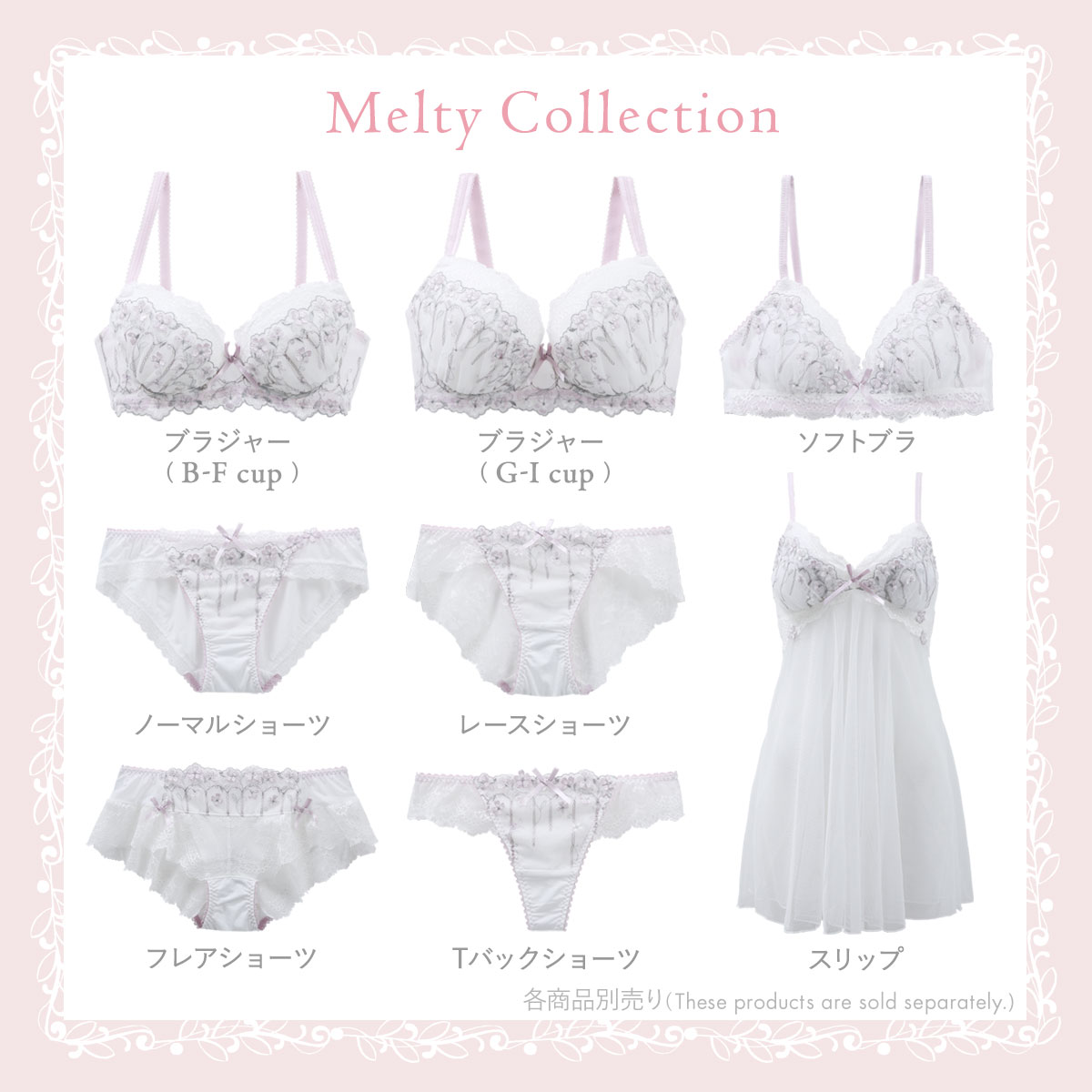 たくさんの小花を散りばめお花が咲いているような立体感を演出した、リサマリ「メルティ」コレクション。ひらひらと動くお花がとても上品で可愛らしく、上品さを軸に少し大人可愛い女性をイメージしたカラー展開です。