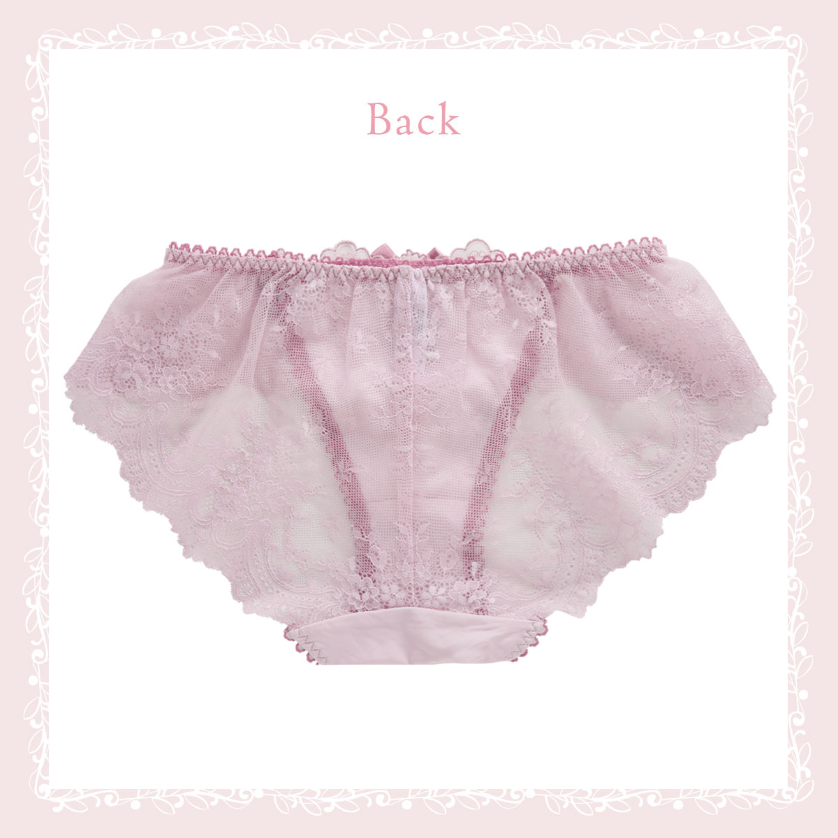 バック全体にレースをあしらったレースショーツ。繊細なレースを使用し、美しい透け感。伸縮性があるのでほどよくヒップにフィットします。
