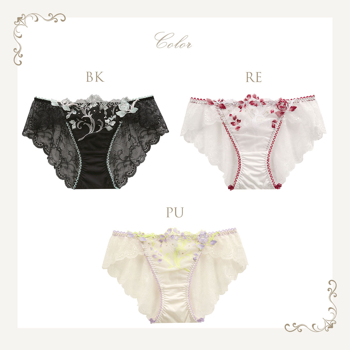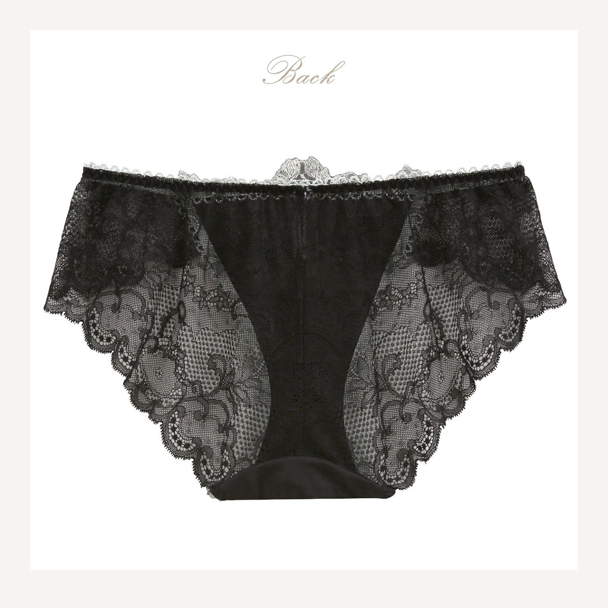 バック全体にレースをあしらったレースショーツ。繊細なレースを使用し、美しい透け感。伸縮性があるのでほどよくヒップにフィットします。