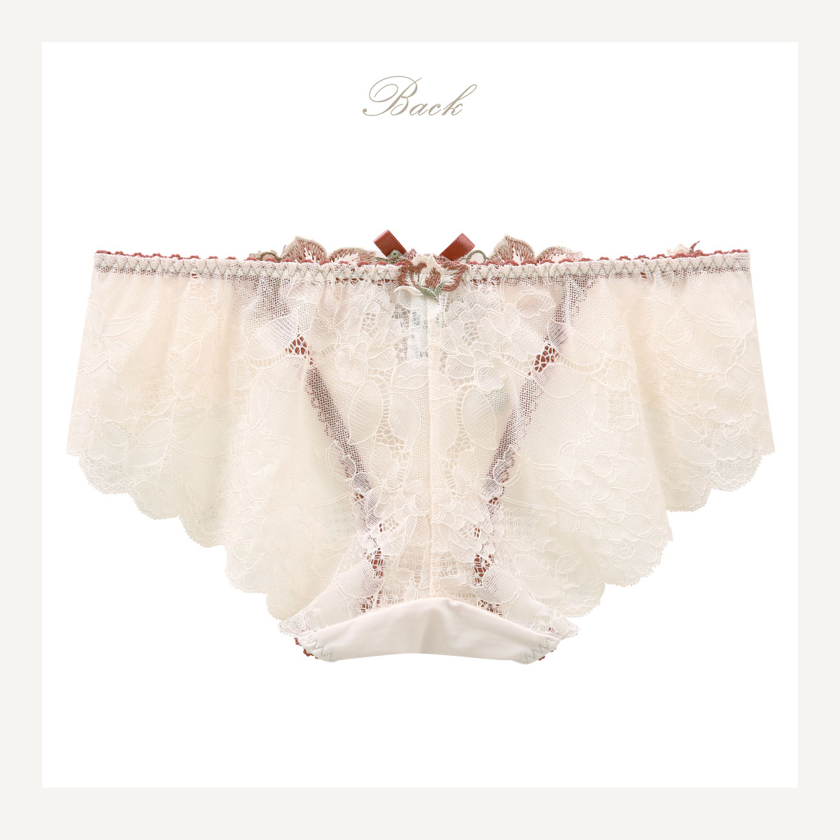 バック全体にレースをあしらったレースショーツ。繊細なレースを使用し、美しい透け感。伸縮性があるのでほどよくヒップにフィット。通気性がよく、快適にご着用いただけます。ボトムスへもショーツラインが響きにくいです。