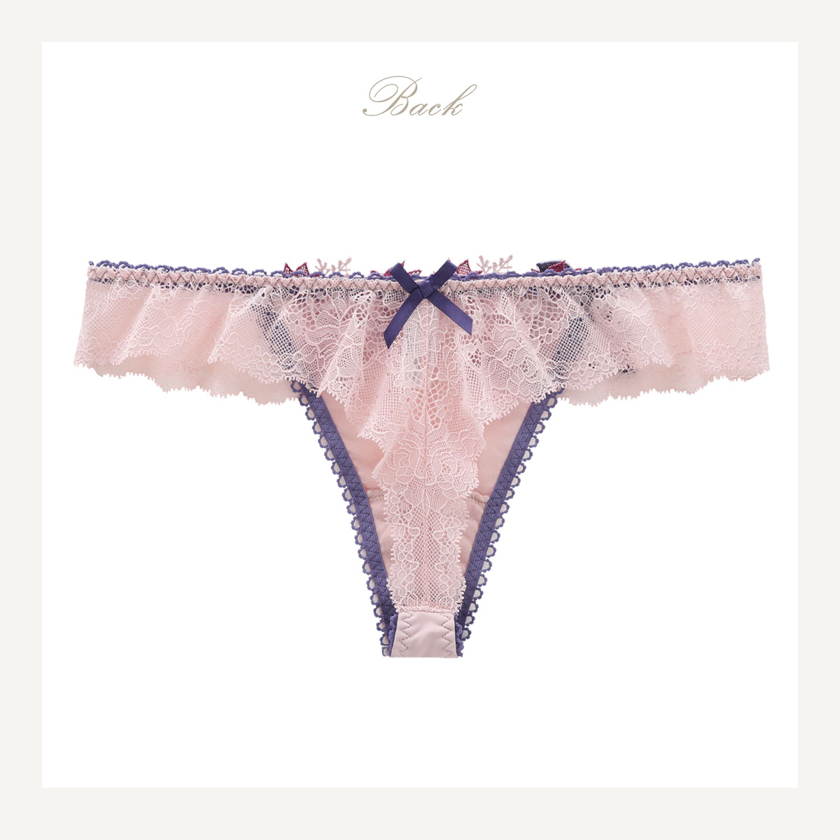 ウエストサイドからバック部分にかけて総レース仕様になっており、セクシーな仕上がり。バックのリボンが可愛らしいアクセントになっています。ショーツのラインが気にならないためボトムスの種類を問わず幅広くご着用いただけます。