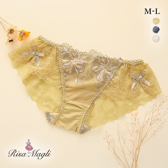 バック全体にレースをあしらったレースショーツ。繊細なレースを使用し、美しい透け感。伸縮性があるのでほどよくヒップにフィットします。