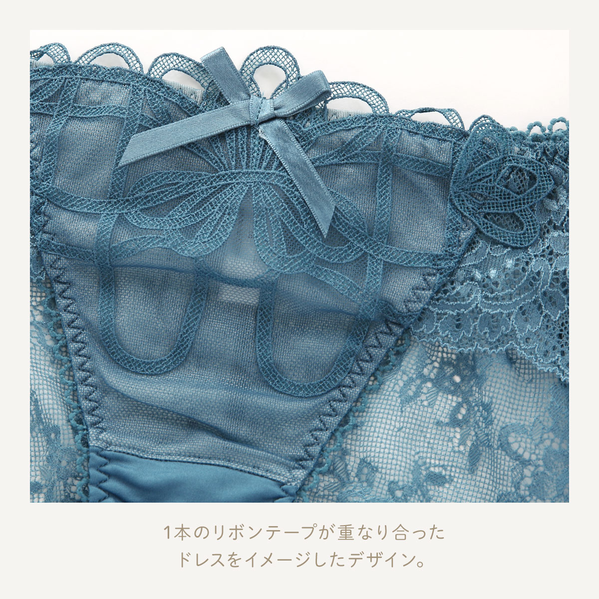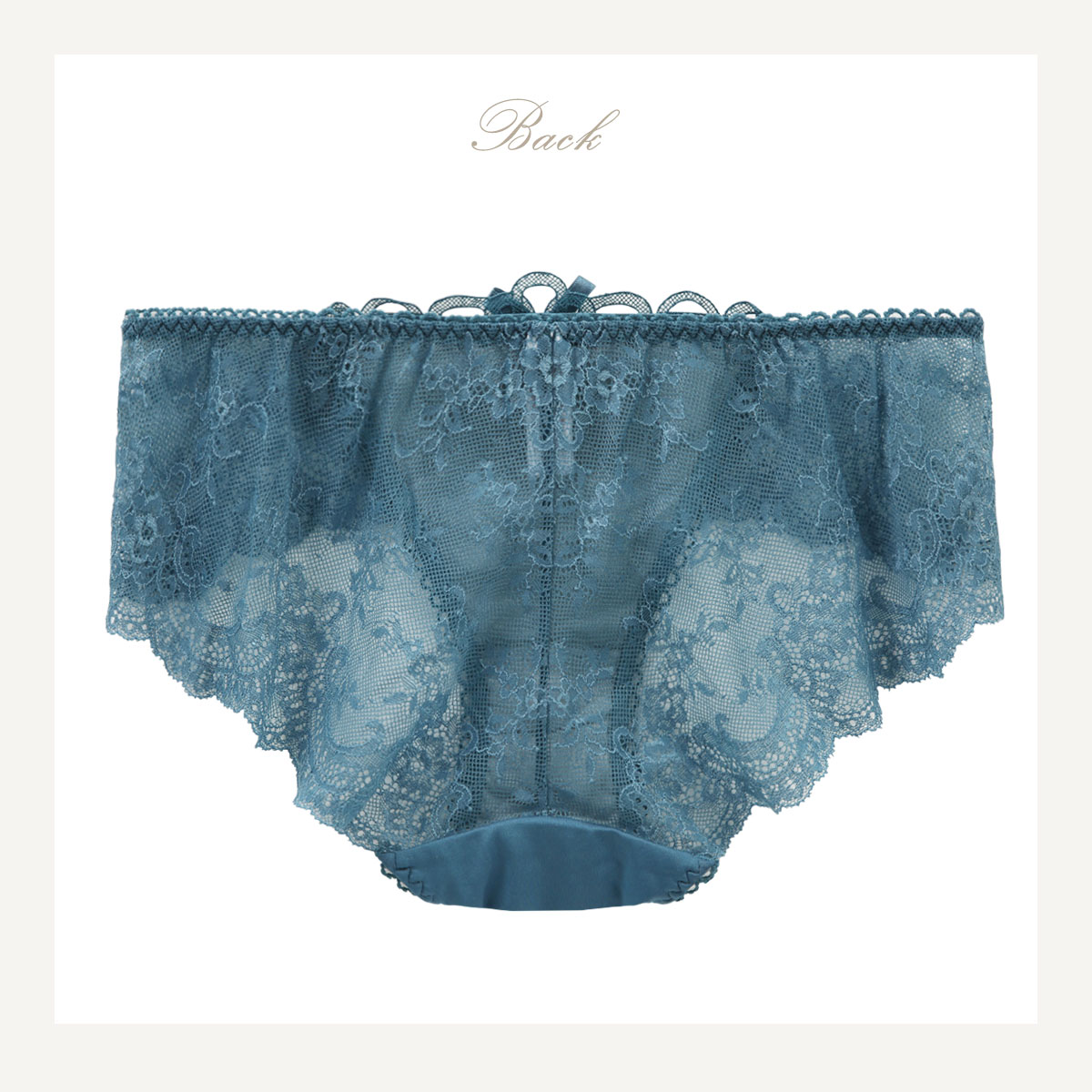 バック全体にレースをあしらったレースショーツ。繊細なレースを使用し、美しい透け感。レースは伸縮性があるのでほどよくヒップにフィットします。ボトムスへもショーツラインが響きません。通気性がよく、快適にご着用いただけます。