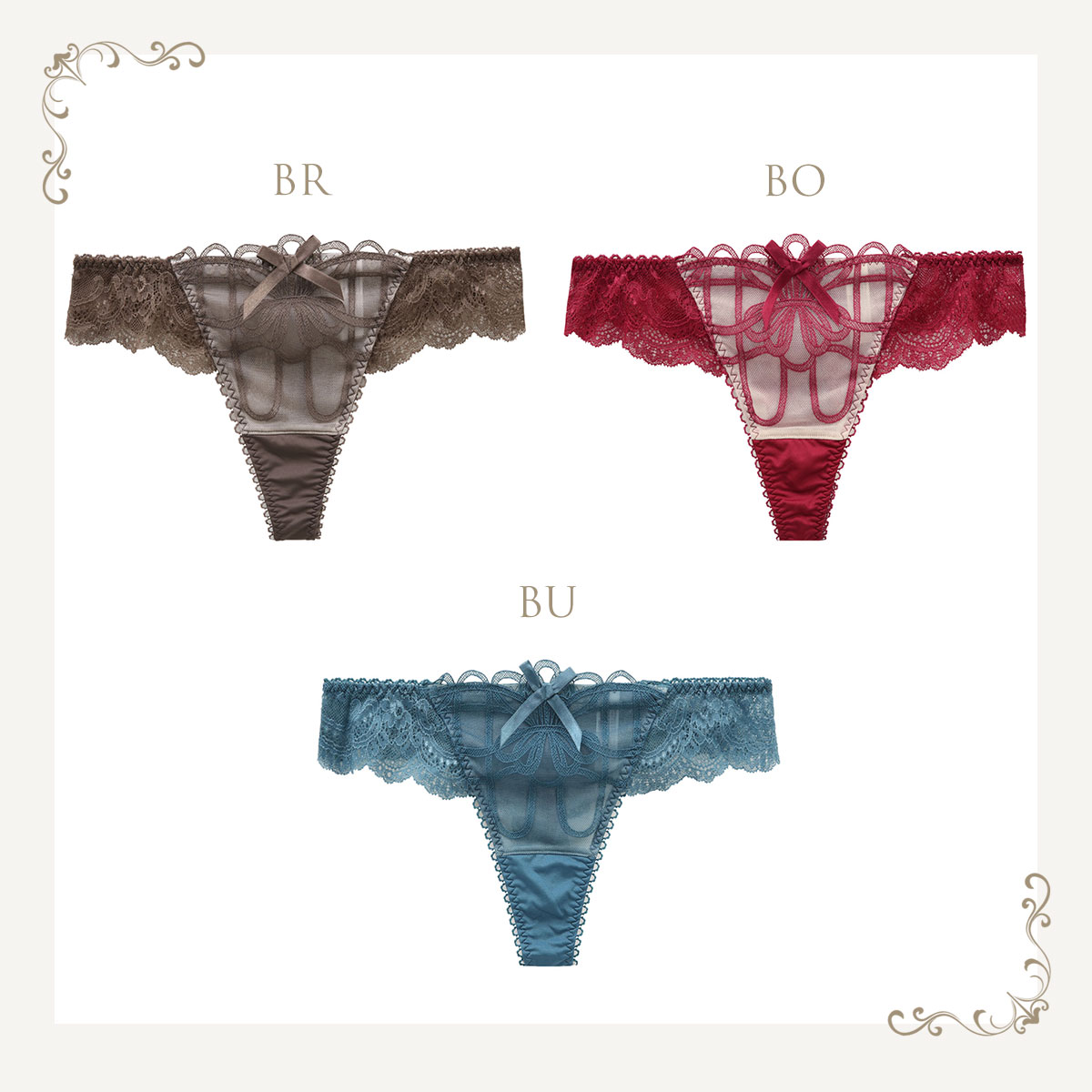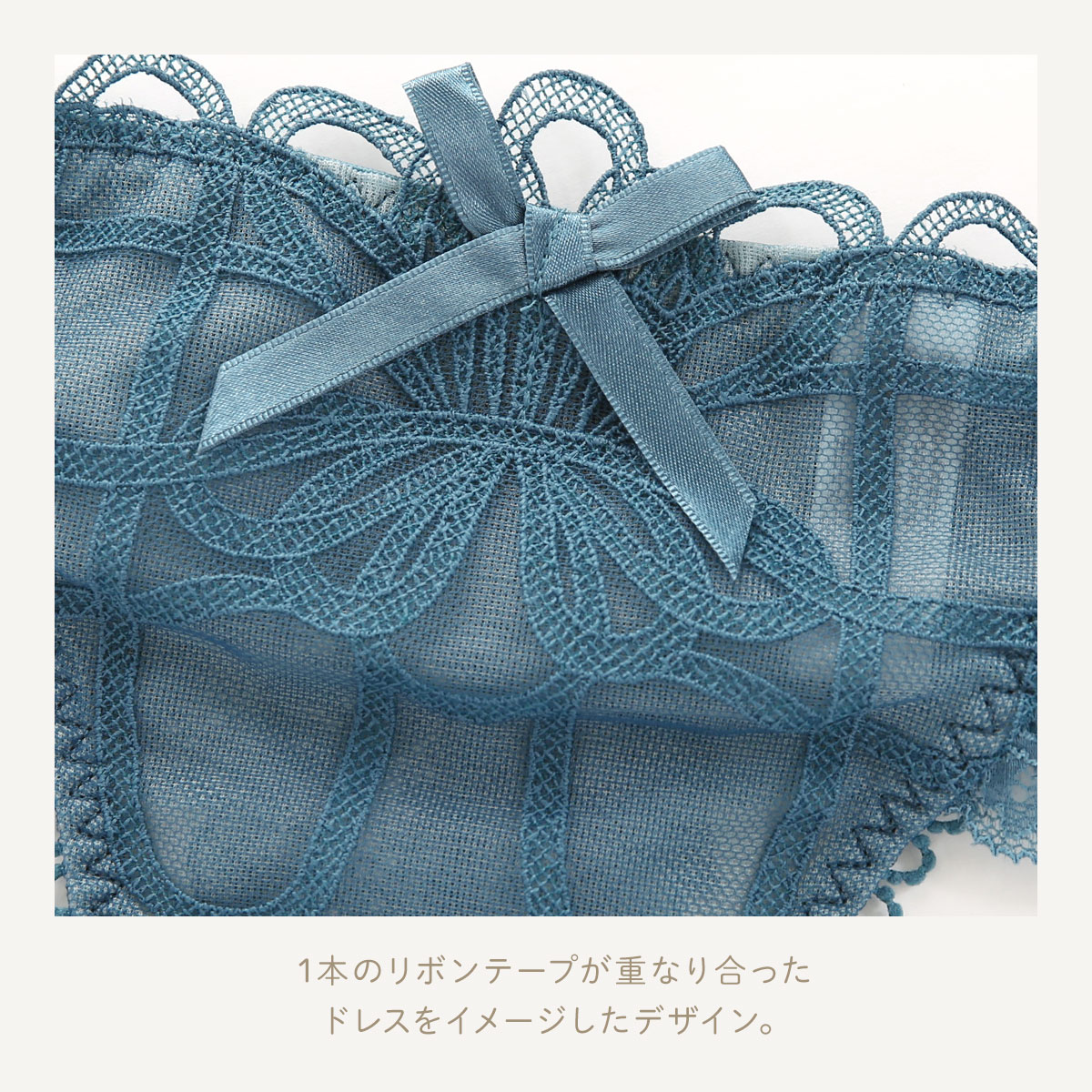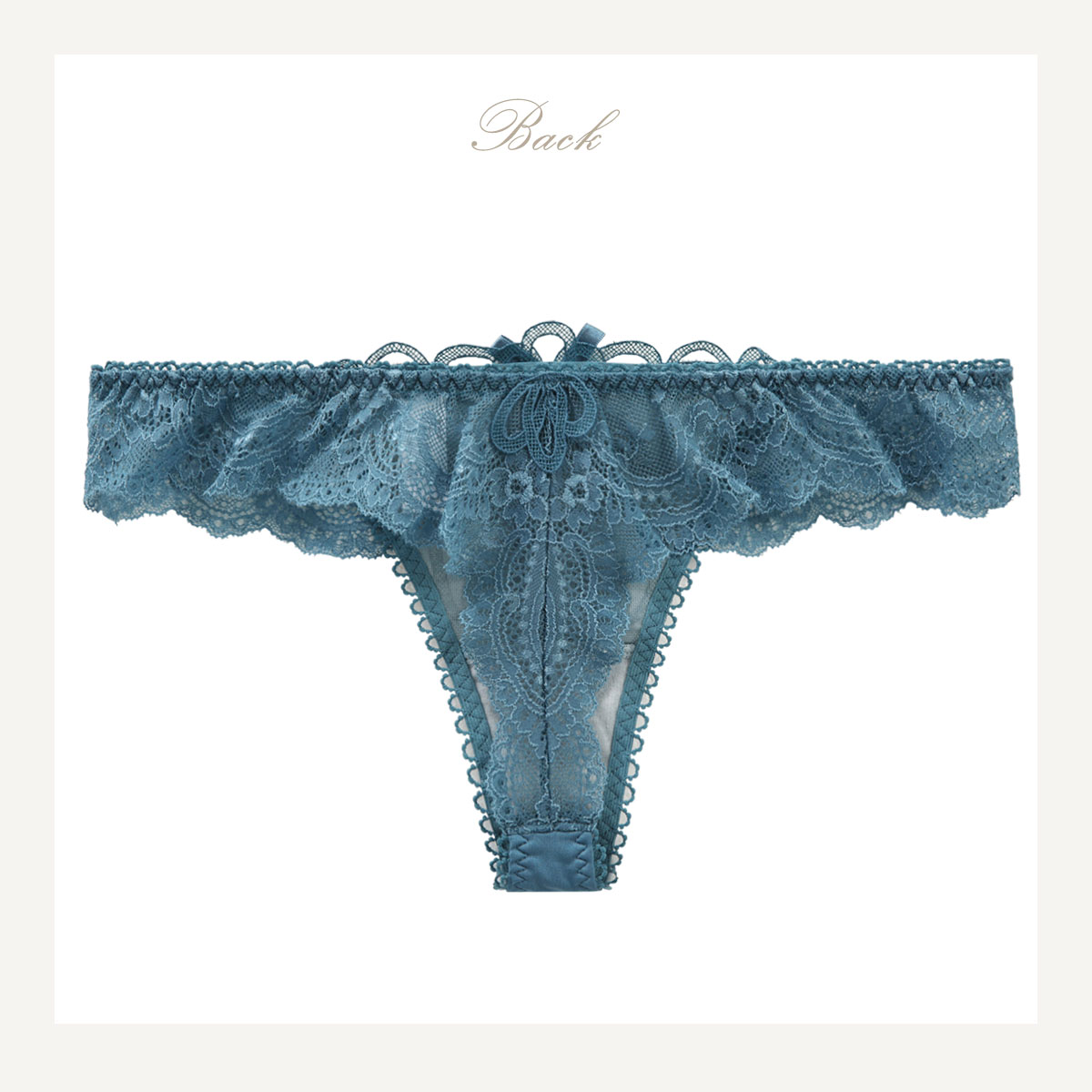 ウエストからバック部分にかけてレースをあしらったTバックショーツ。繊細なレースを使用し、美しい透け感。レースは伸縮性があるのでほどよくヒップにフィットします。ボトムスへもショーツラインが響きません。通気性がよく、快適にご着用いただけます。