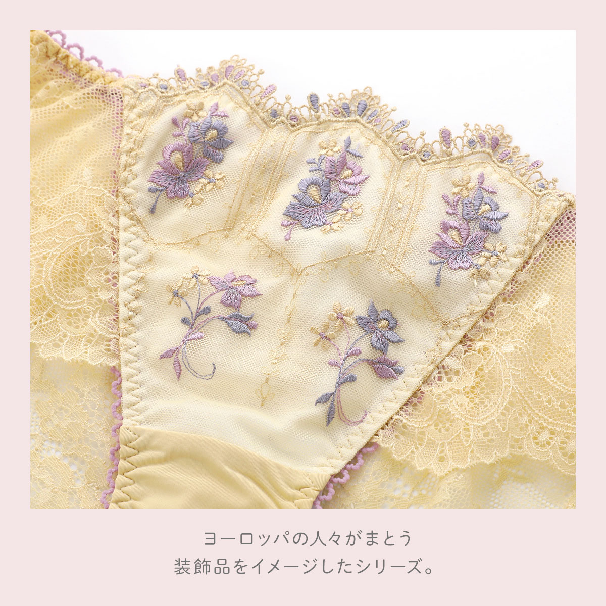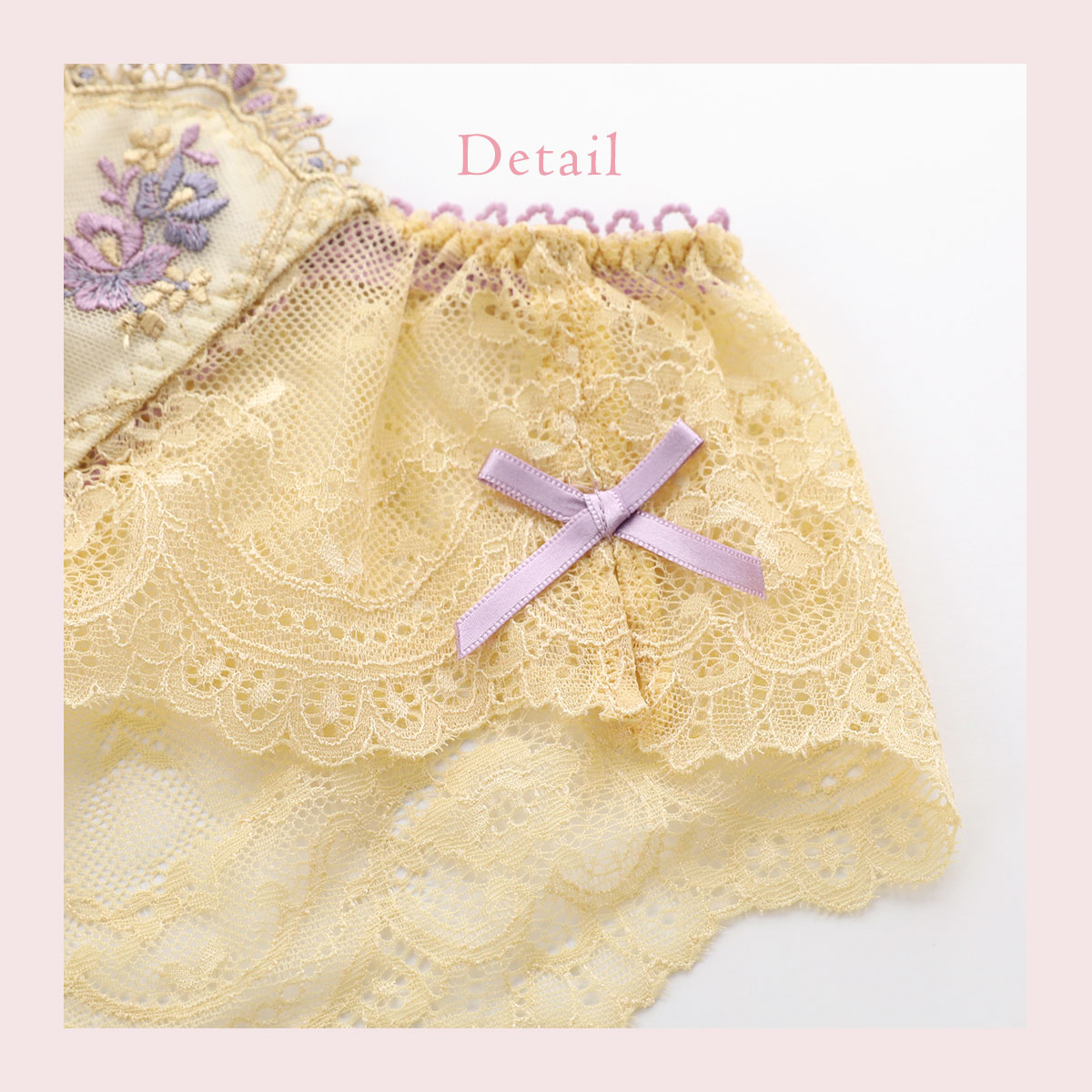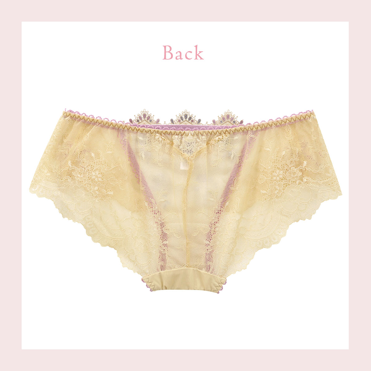 バック全体にレースをあしらったレースショーツ。繊細なレースを使用し、美しい透け感。伸縮性があるのでほどよくヒップにフィットします。