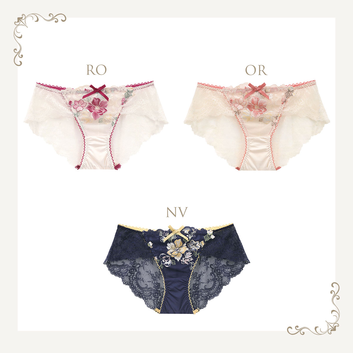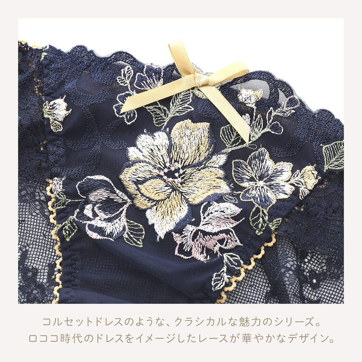 コルセットドレスのようなクラシカルなデザインが魅力のシリーズ、リサマリレーヌ「エリオット」コレクション。ロココ時代のドレスをイメージしたレースは、お花と幾何学模様をあしらい、それぞれステッチを変化させることで華やかさと奥行きを演出。全体的に丸みのあるシルエットで、まるでコルセットドレスをまとったかのような、豪華で気品あふれる美しさに仕上げました。