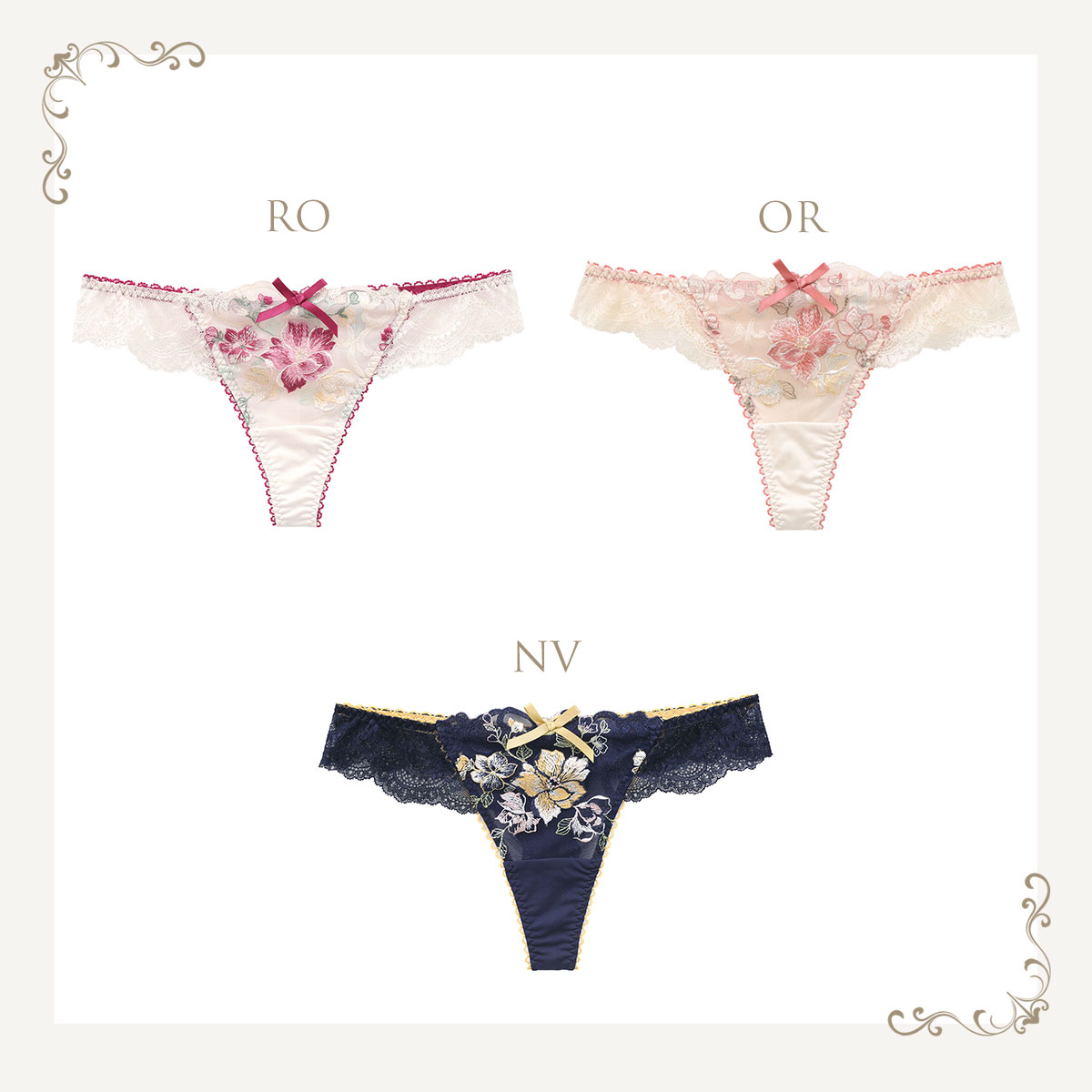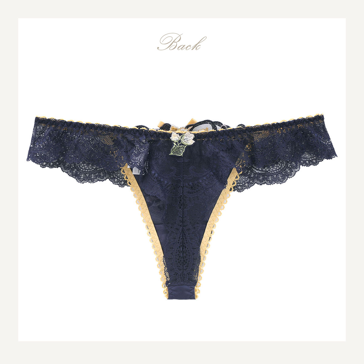 ウエストからバック部分にかけて総レース仕様のTバックショーツ。バック中心にはフラワーアップリケがあしらわれ、フェミニンな印象です。ショーツのラインが気にならないためボトムスの種類を問わず幅広くご着用いただけます。