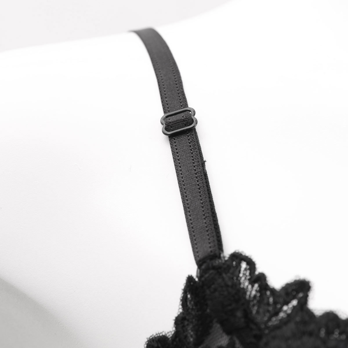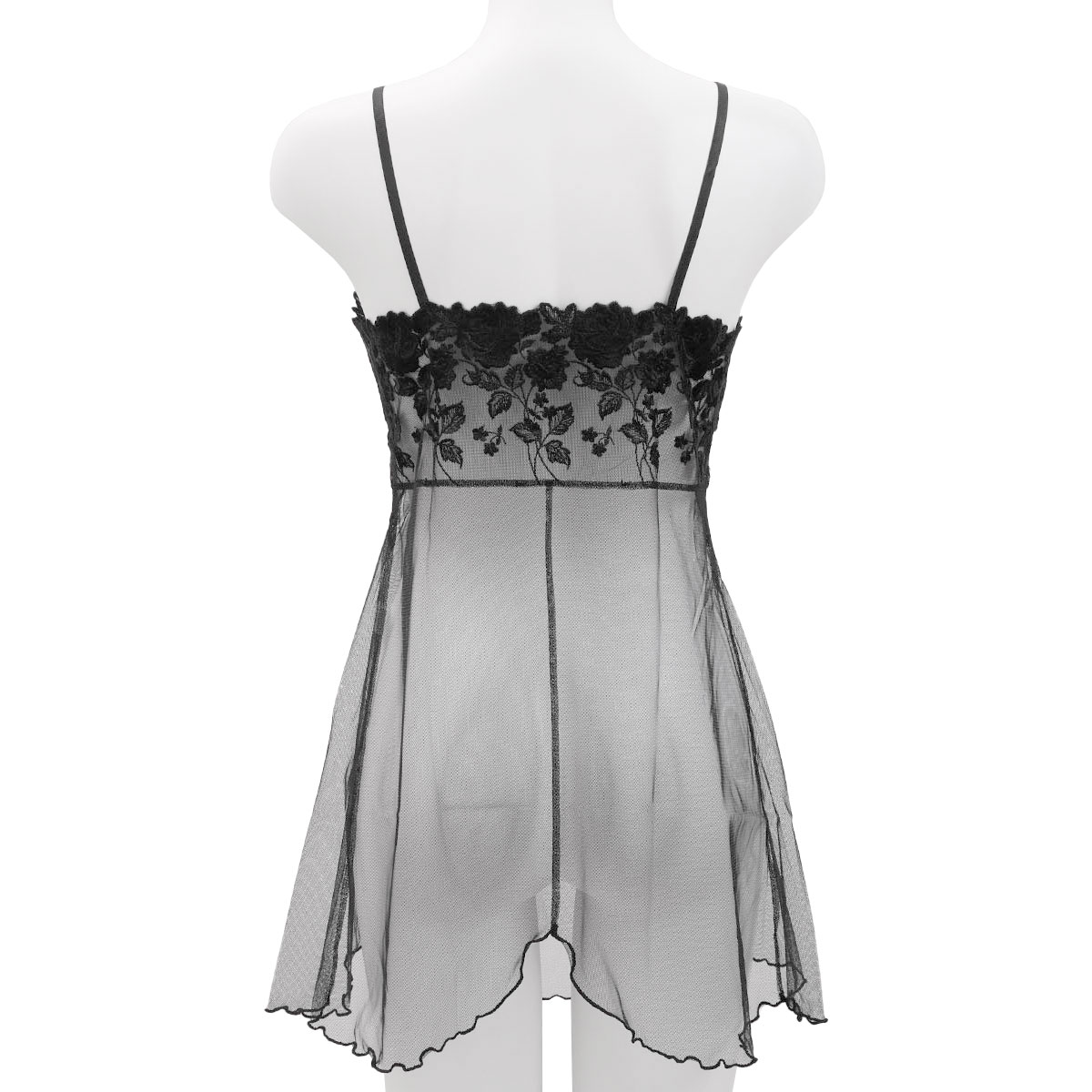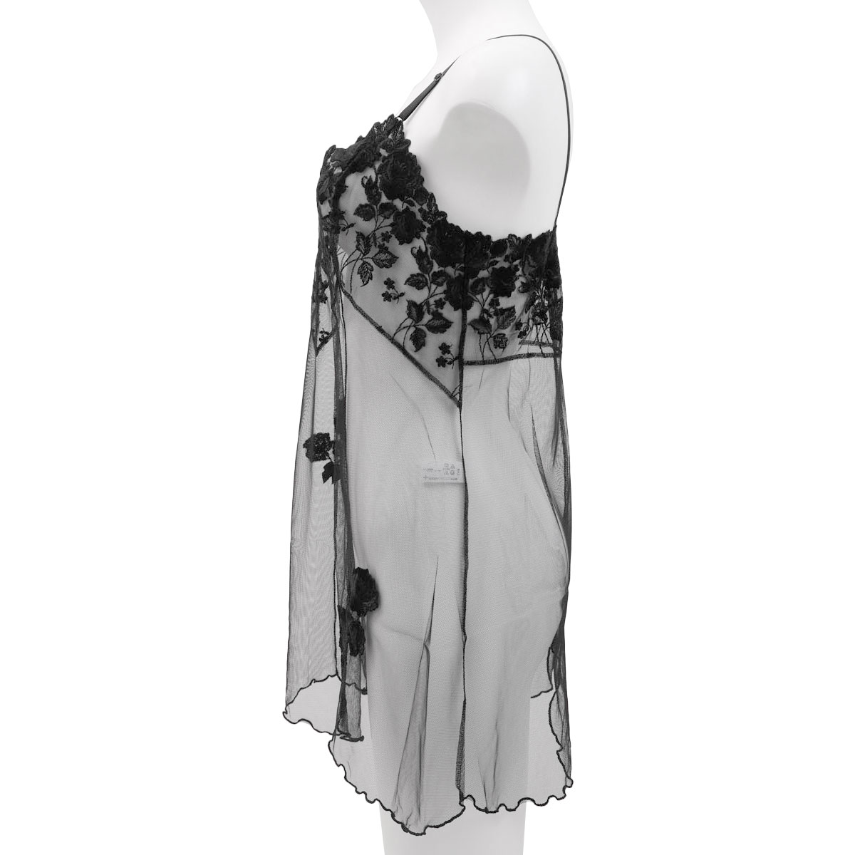 ボンレヴェール BonRevaire バラ柄チュールレース シースルー レース ミニスリップ 日本製(BK-ブラック-M-75)