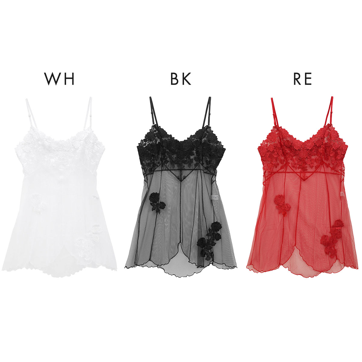 ボンレヴェール BonRevaire バラ柄チュールレース シースルー レース ミニスリップ 日本製(RE-レッド-M-75)
