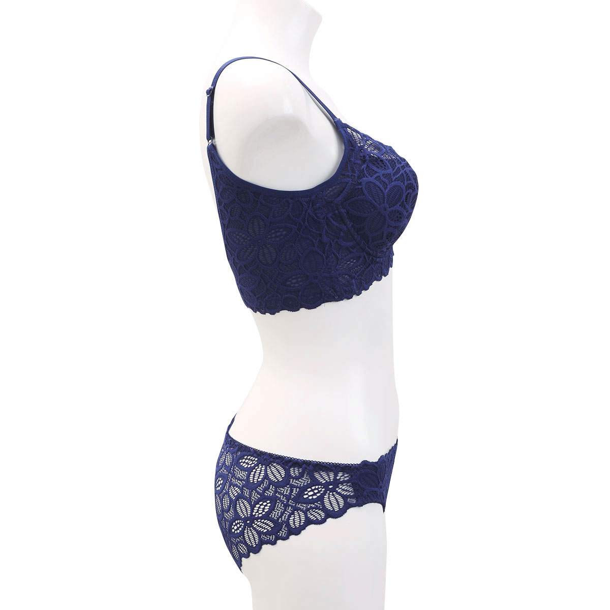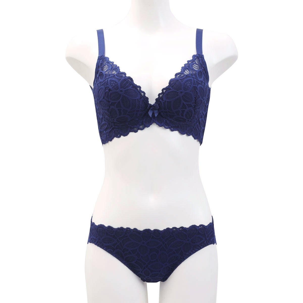 大花総レース ブラジャー ショーツ セット 超脇高 脇肉(NV-ネイビー-B65-M) SOLDOUT
