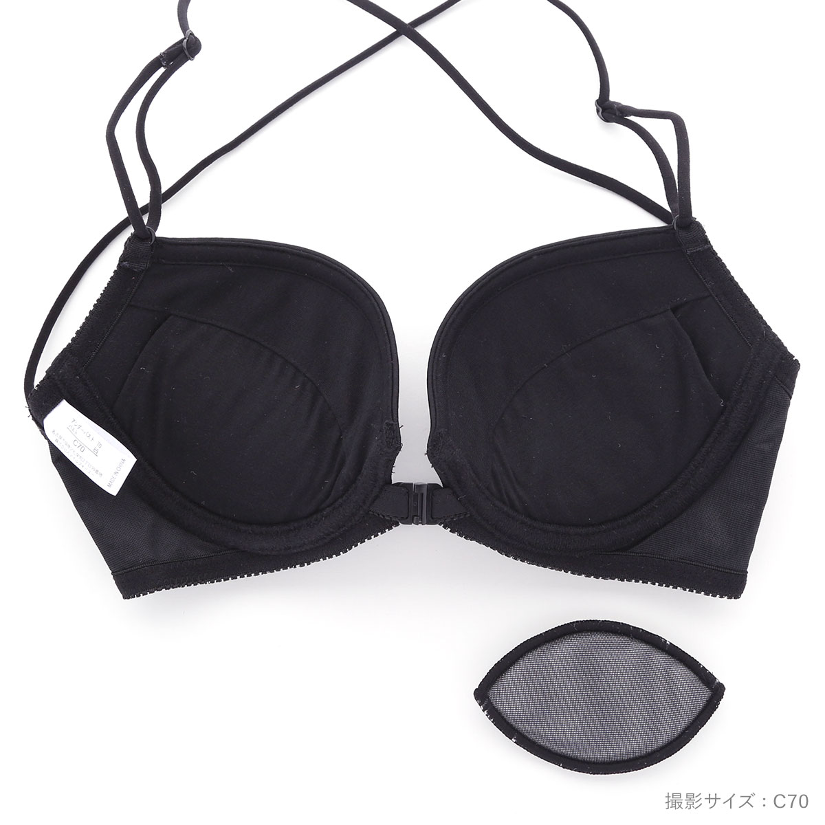 | 仕 様 | ブラ ・フロントホック ・3/4カップ ・下厚内蔵パッドと取り外し可能なレモンパッドのWパッド仕様 ・肩紐取外し:不可 ・ワイヤー入り ・サイドボーン:あり
