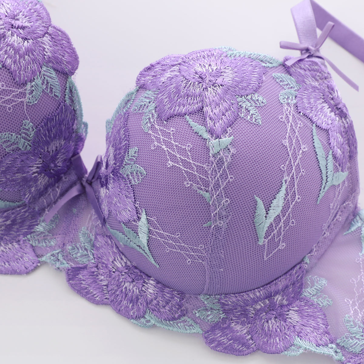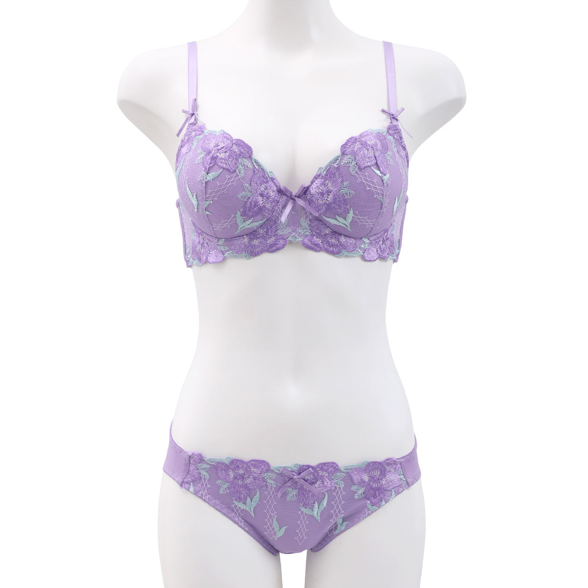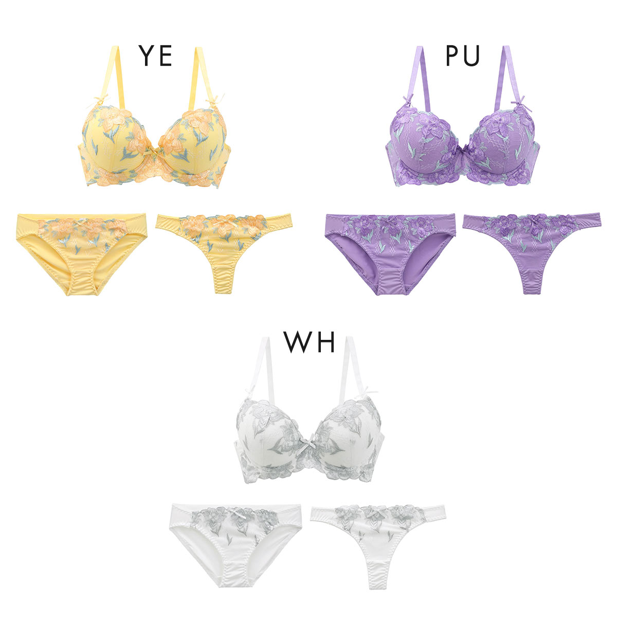 スタンダードショーツとTバックショーツ付きのお得なブラショーツ3点セット。大柄のローズ刺繍が鮮やかな、セクシー可愛いデザインです。