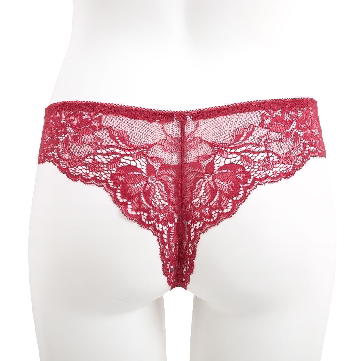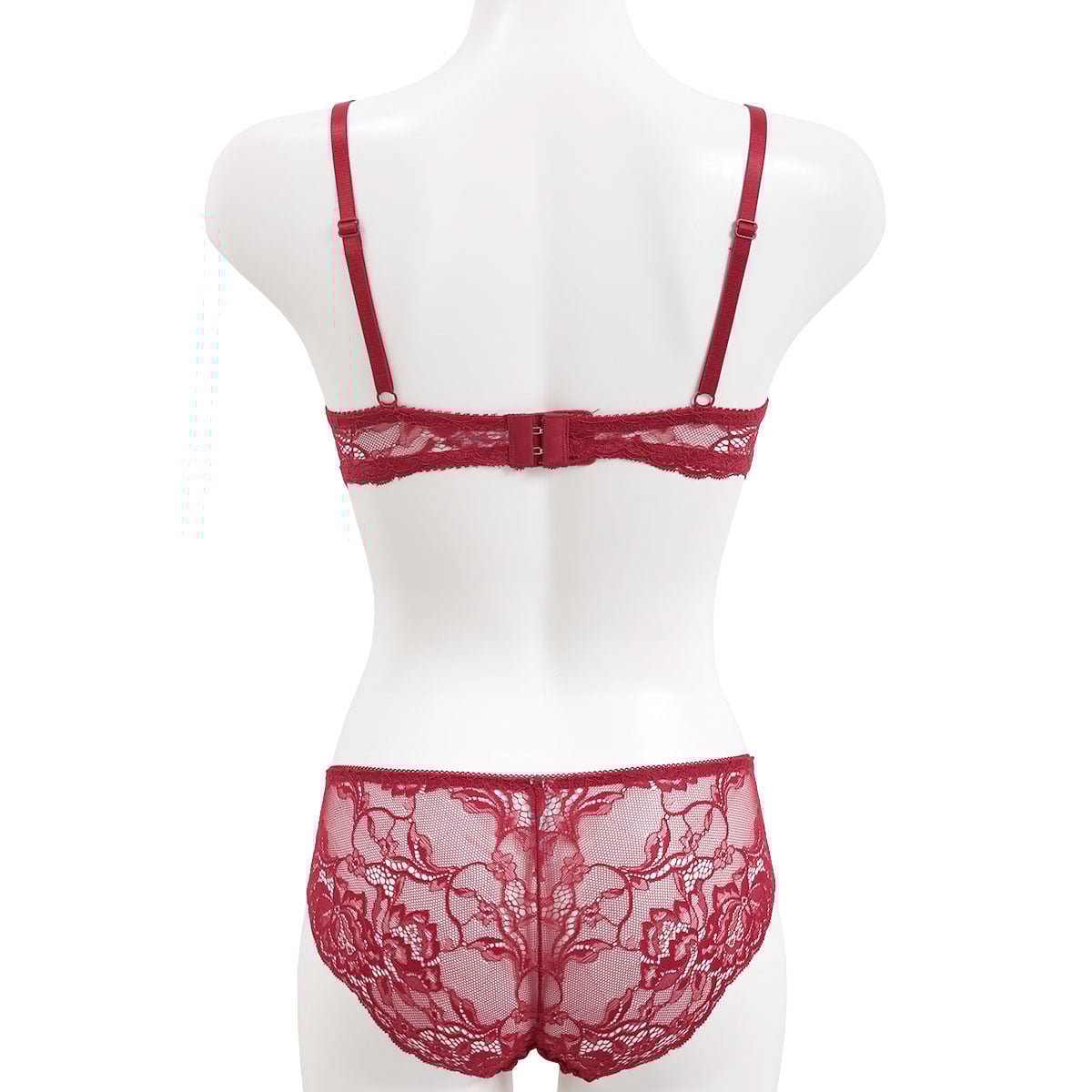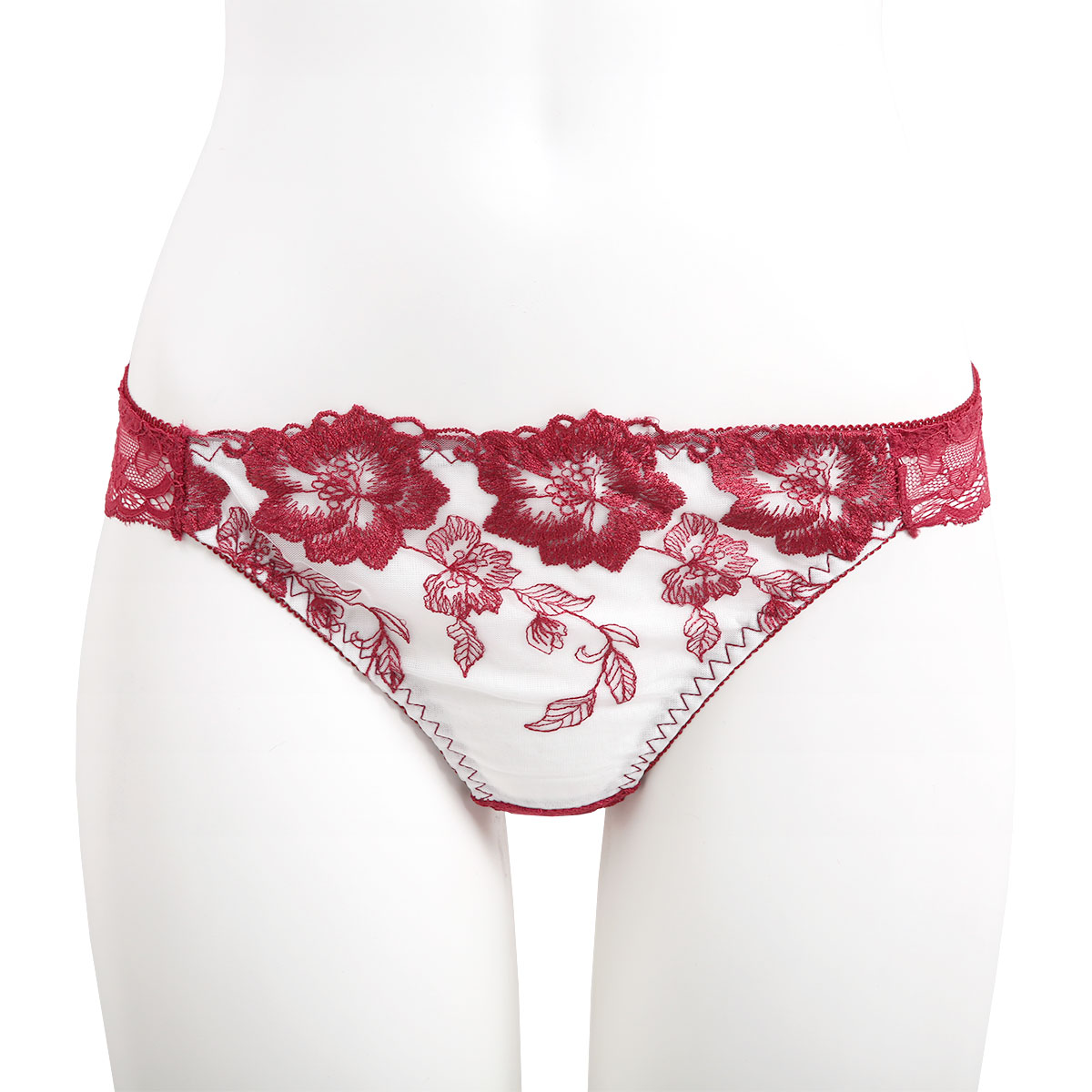 スタンダードショーツとTバックショーツ付きのお得なブラショーツ3点セット。繊細な刺繍レースとストレッチレースの優美なデザイン。