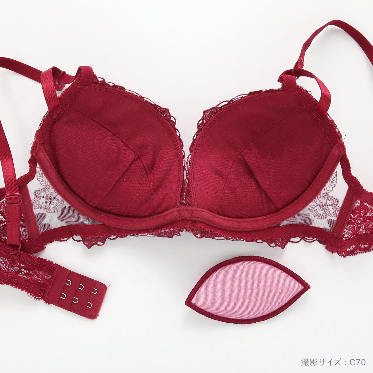 カップ裏は取り外しできる薄手のレモンパッドと下厚内蔵パッドでボストボリュームをUP。L字ワイヤー仕様で美しいY字の谷間をメイクします。