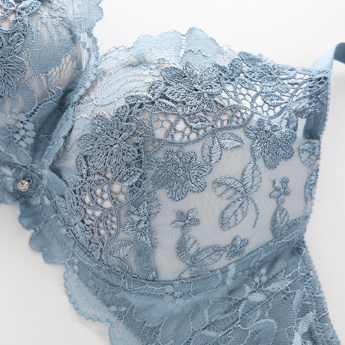 カップフロントのレースのリフトとサイドのボーンで、背中に流れようとするお肉をしっかりホールド。脇流れを防いで、バストをカップ内に綺麗におさめます。ストラップは幅広仕様で、肩からズレにくく、後ろ姿をキレイに魅せてくれるU字スタイルです。