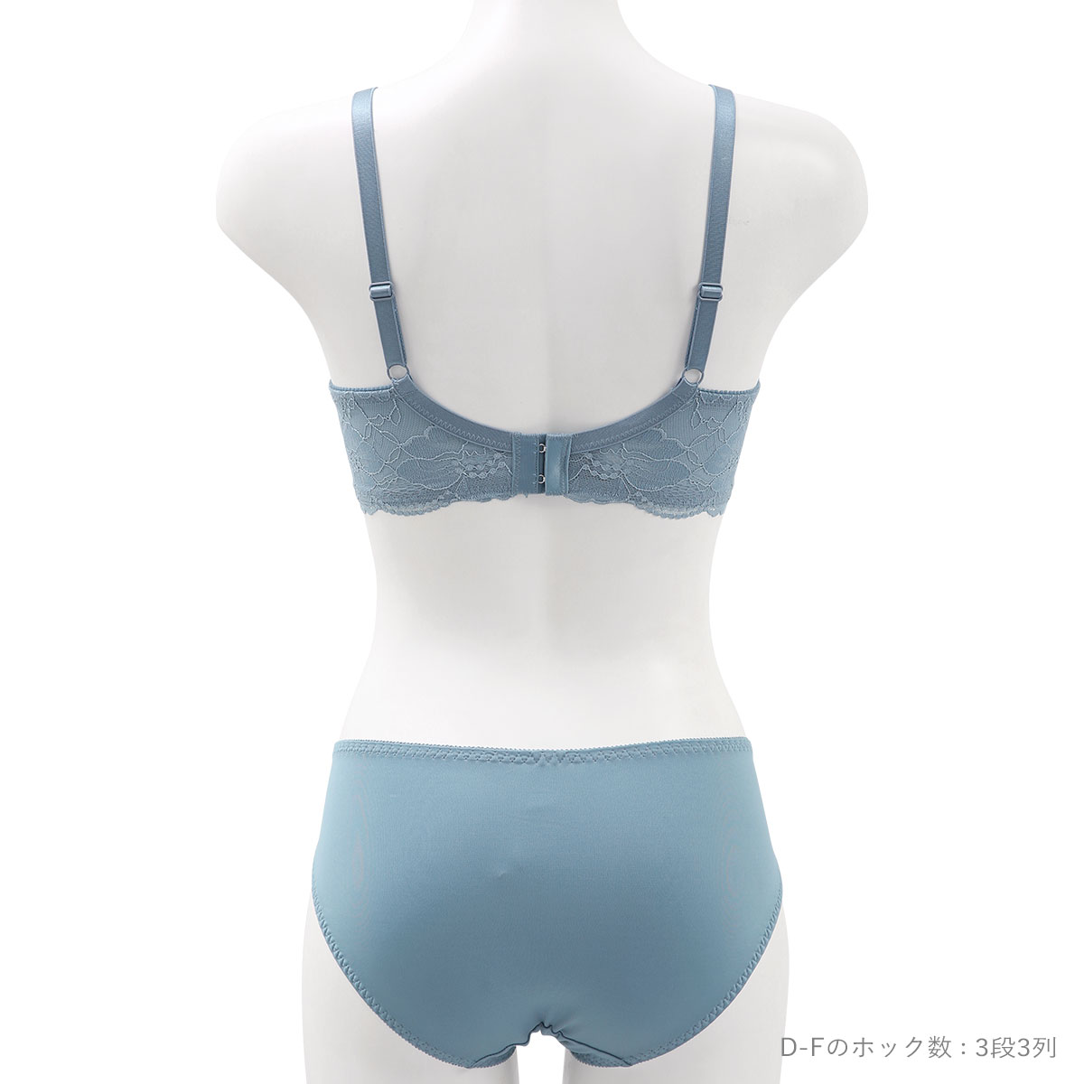 | 仕 様 | 【ブラ】 ・ホックの数:2段3列(DEFカップは3段3列) ・3/4カップ ・パッド取外し:可能 ・肩紐取外し:不可 ・ワイヤー入り ・サイドボーン:あり ・脇高設計 ※アクセサリーは取り外しできません。