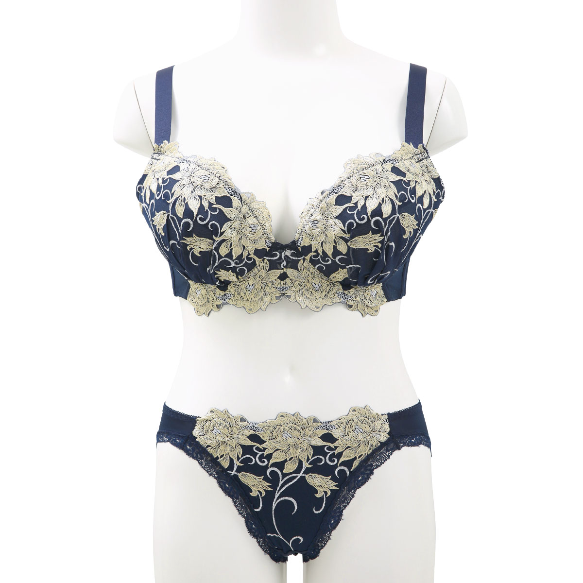 ビーオーエヌ bon 美胸 脇寄せ バストメイクブラ 美胸引き立つ バラ柄レース シリーズ ブラジャー ショーツ セット GHI(NV-ネイビー-G70-M) SOLDOUT