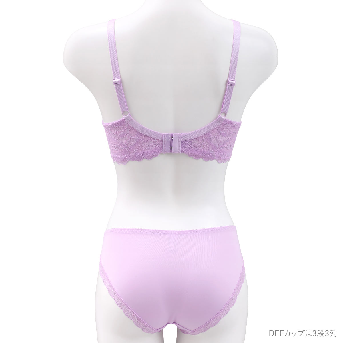| 仕 様 | 【ブラ】 ・ホックの数:2段3列(DEFカップは3段3列) ・3/4カップ ・パッド取外し:可能 ・肩紐取外し:不可 ・ワイヤー入り ・サイドボーン:あり ・脇高設計 ※アクセサリーは取り外しできません。