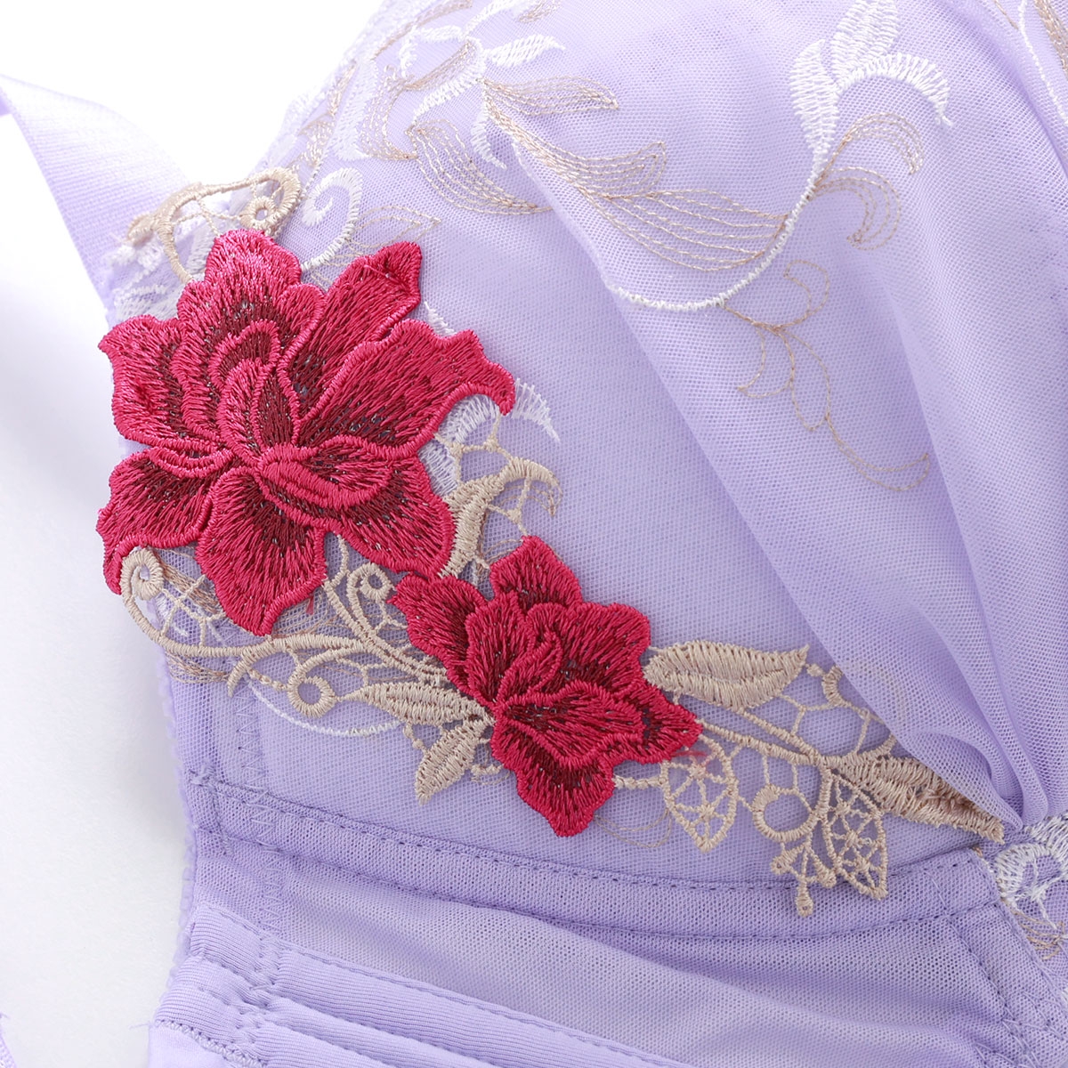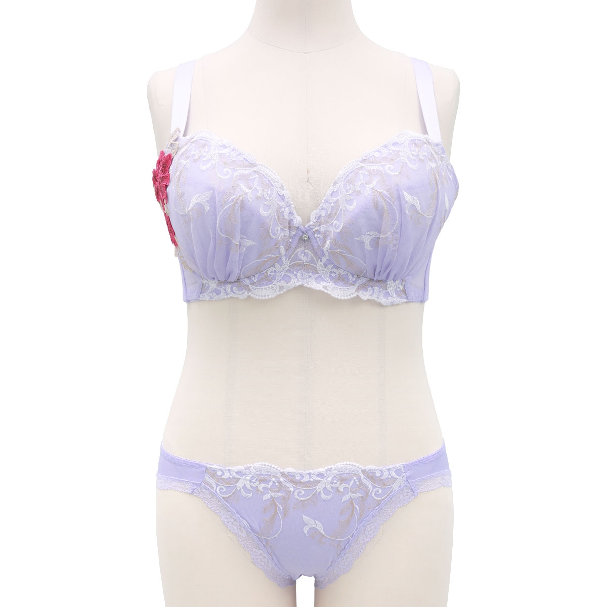 ビーオーエヌ 美胸 脇寄せ バストメイクブラ シリーズ エレガントローズ 脇高 ブラジャー ショーツ セット GHI 大きいサイズ 脇すっきり 脇肉 bon(LV-ラベンダー-G65-M)