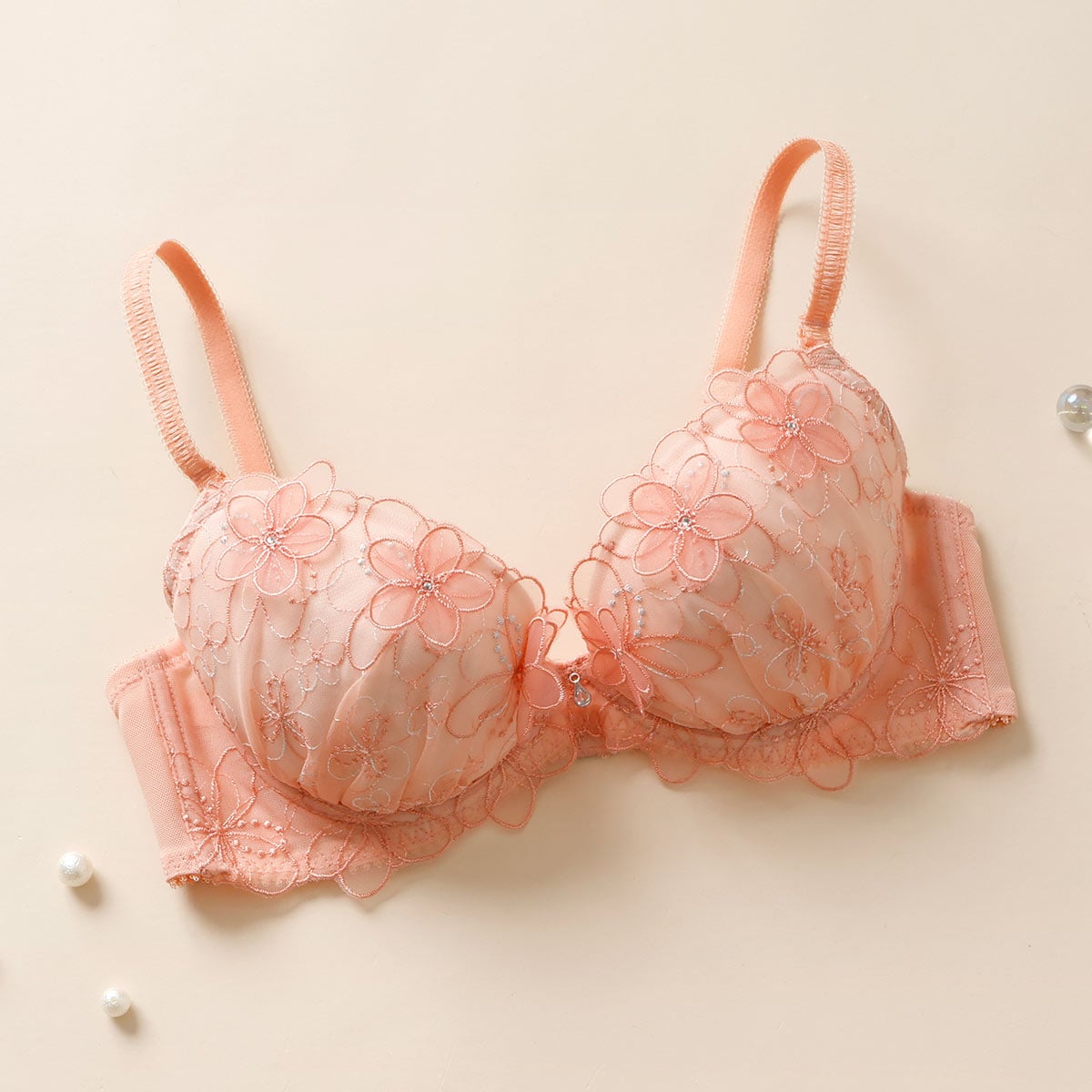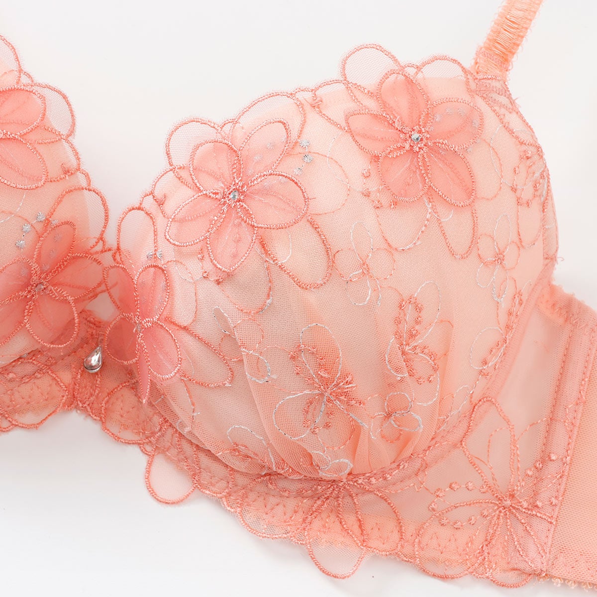 花柄レースに立体的なアップリケを添えて華やかに仕上げた3/4カップブラジャーです♪