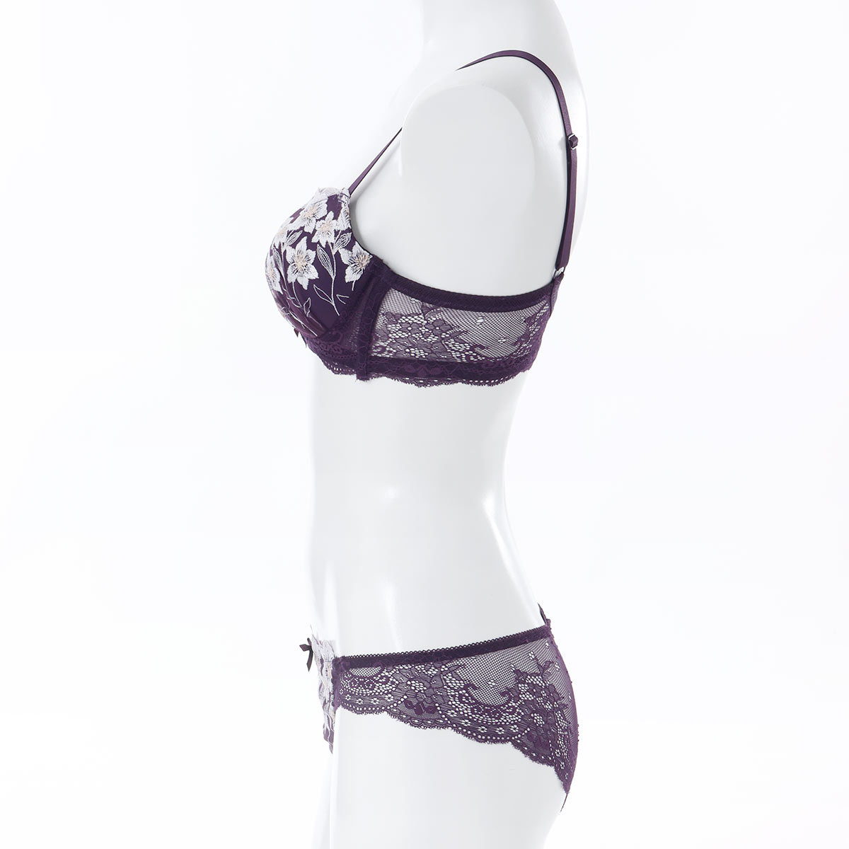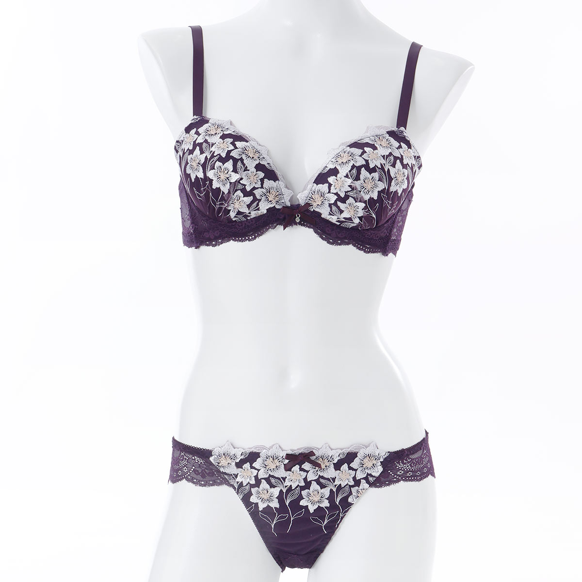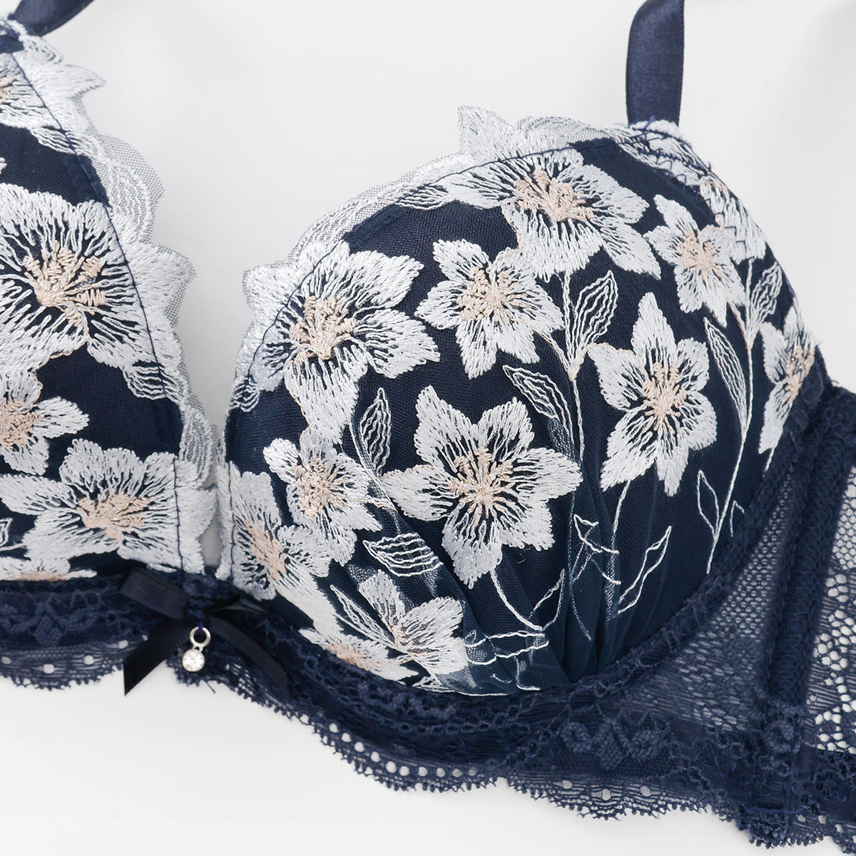 可憐な花柄刺繍が艶やかに咲き誇る、大人上品なブラジャー&ノーマルショーツセットです。