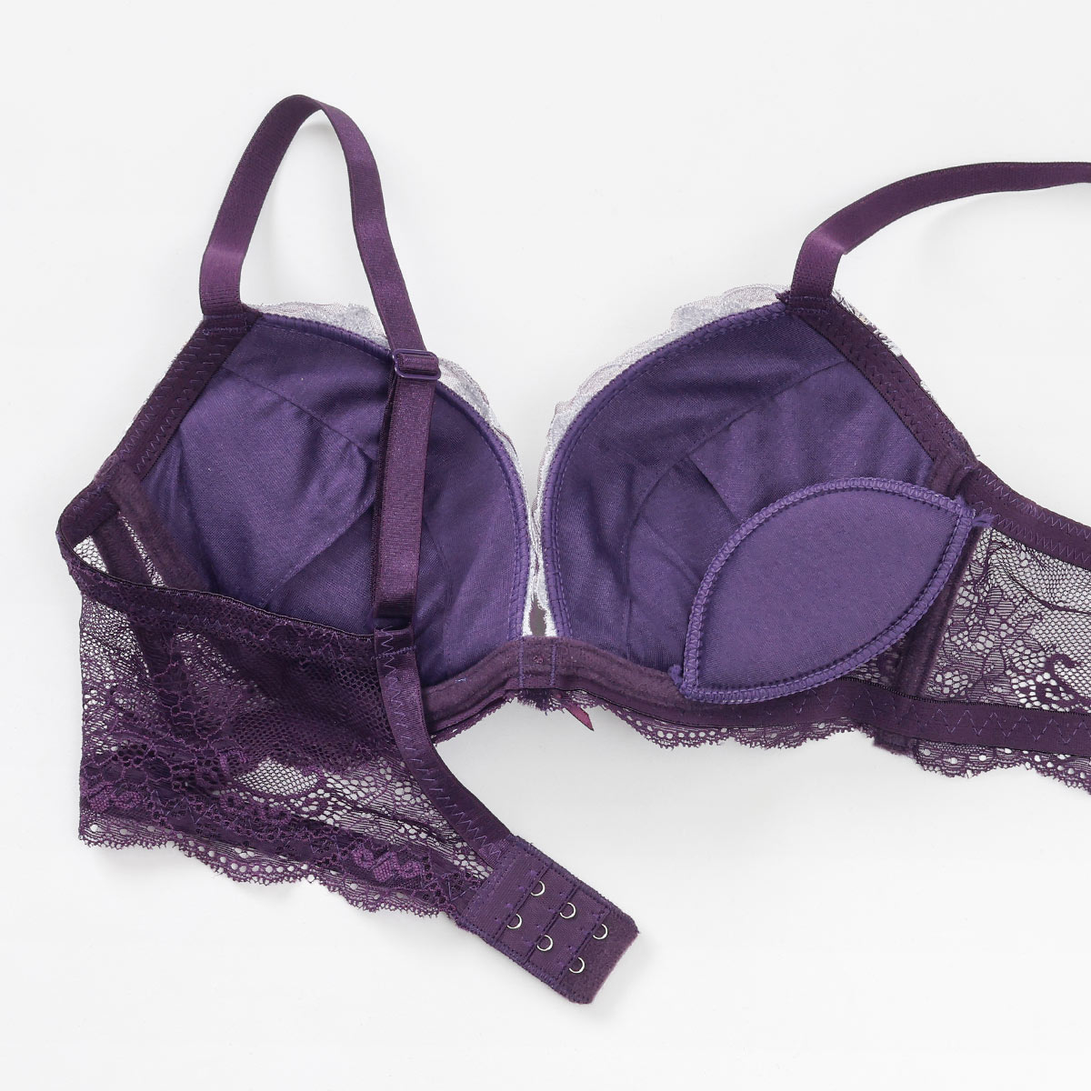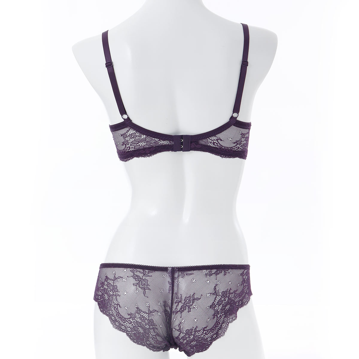 ブラジャーは脇肉を逃さず谷間をメイクする脇高仕様♪カップ裏は下厚内蔵パッドと取り外し可能なふわふわレモンパッド入りで、盛り感のあるボリューミィなバストをメイク。