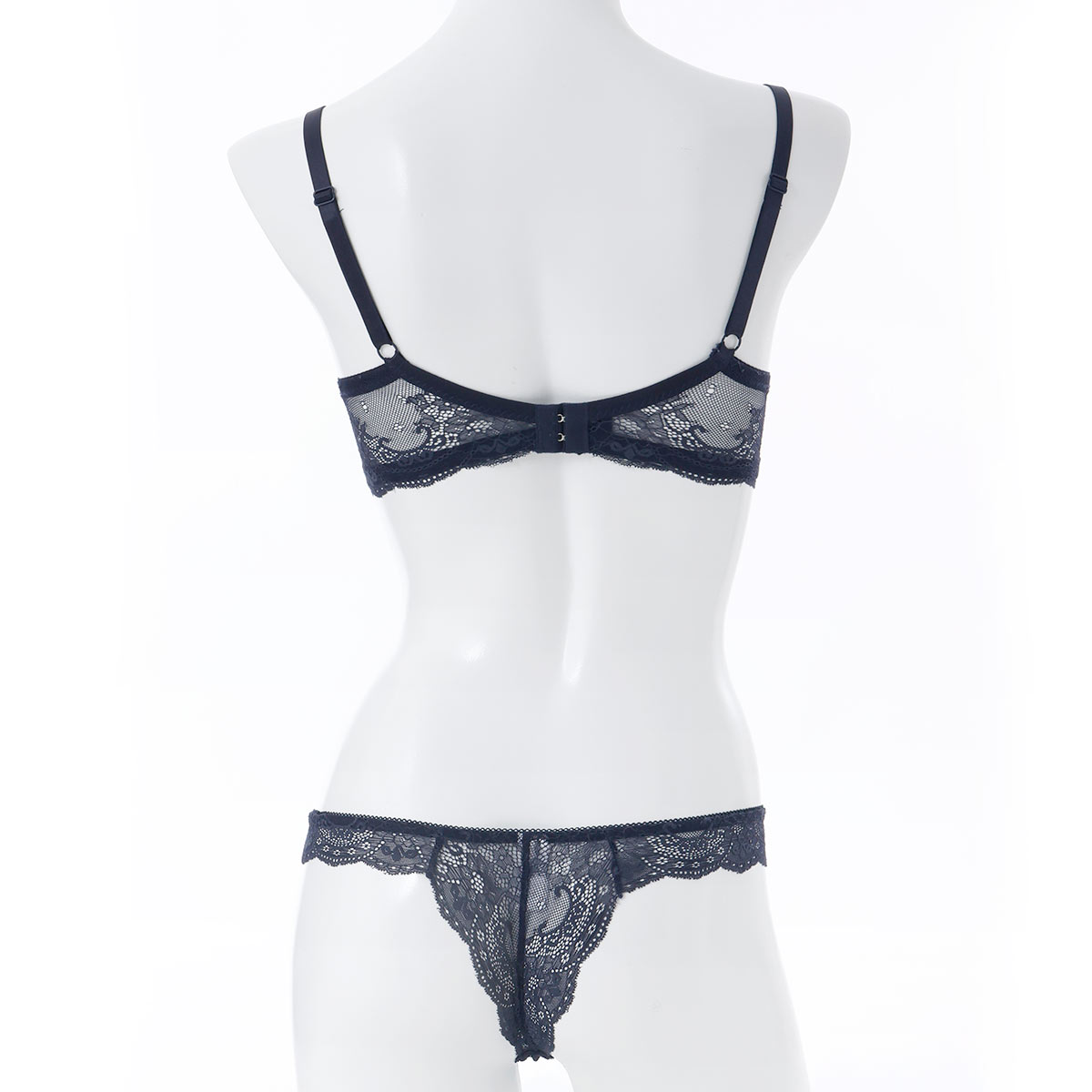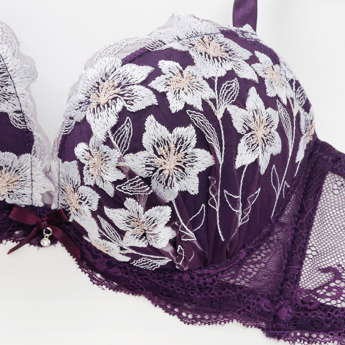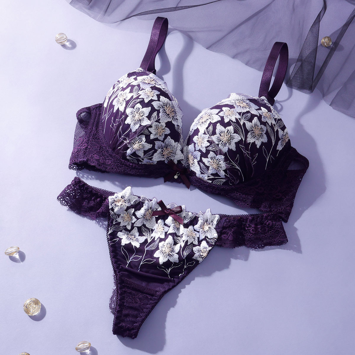 可憐な花柄刺繍が艶やかに咲き誇る、大人上品なブラジャー&Tバックショーツセットです。