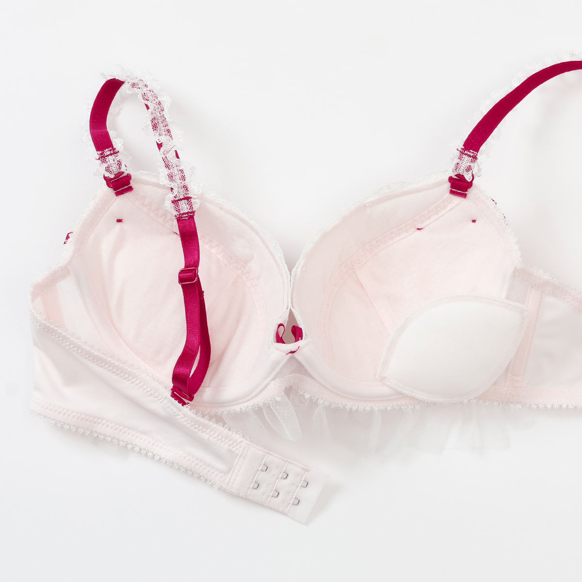 ブラジャーはナチュラルで安定感のあるつけごこち、自然にバストをメイクしてくれる「ナイスフィットパターン」を採用しています。カップ裏の薄手のパッドは取り外せるのでお好みでボリューム調整もOK◎