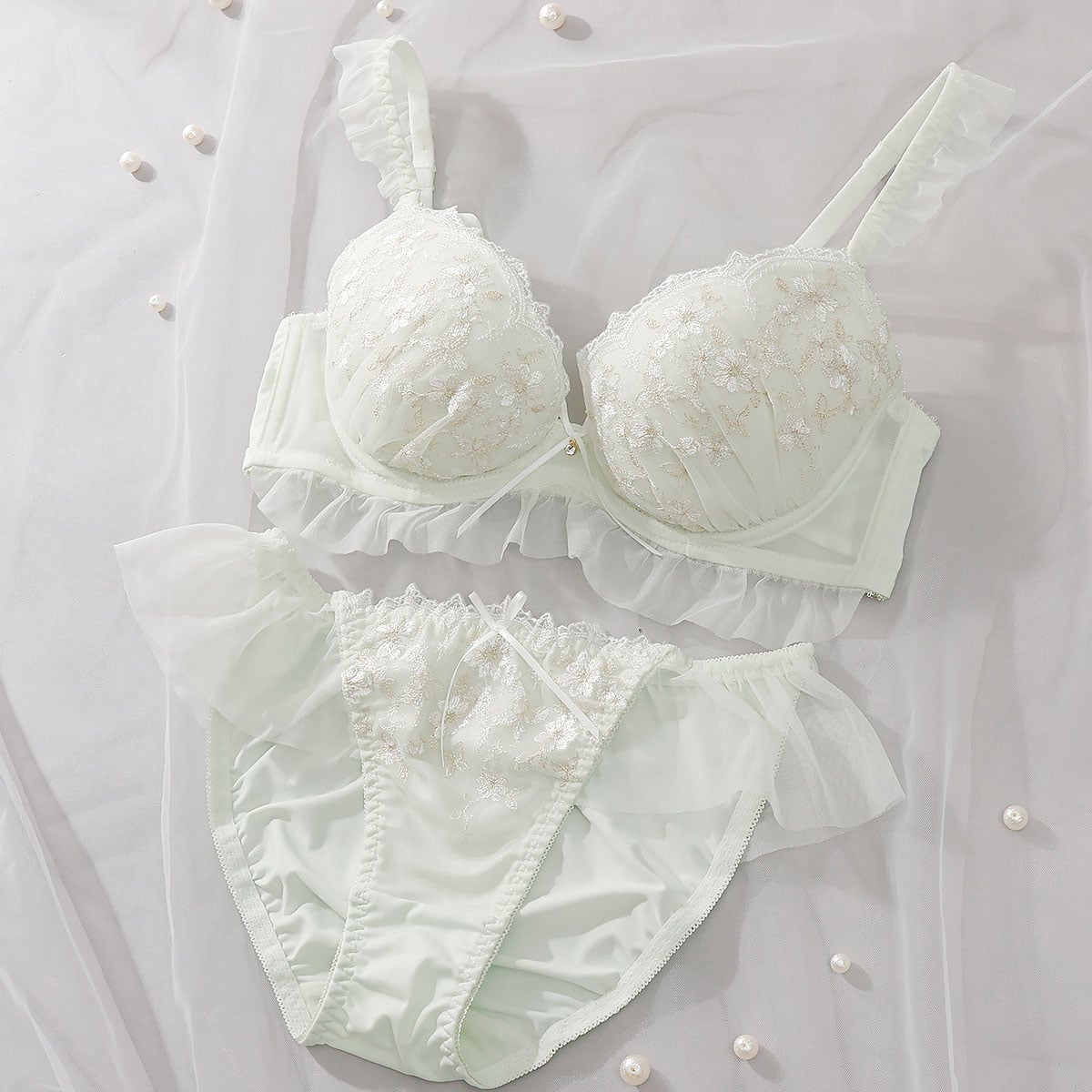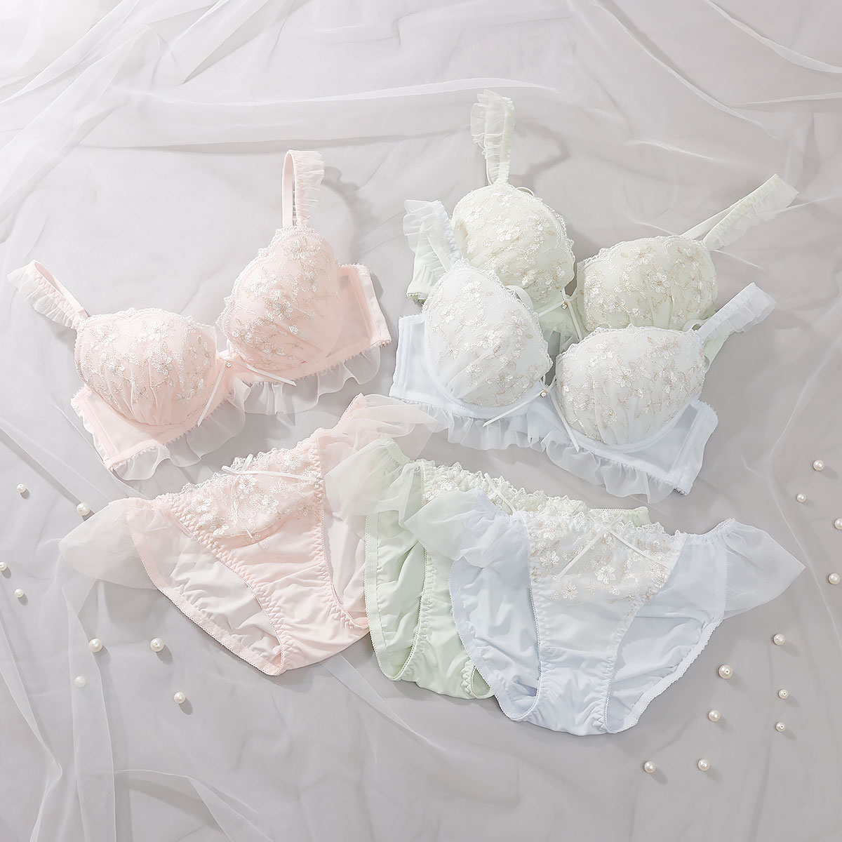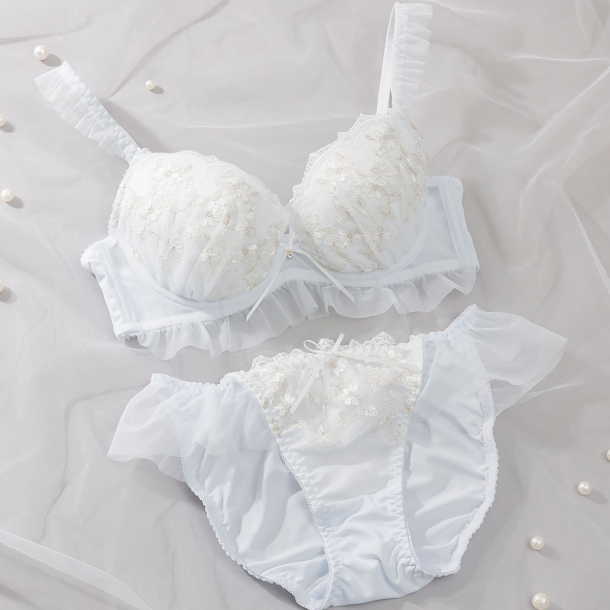 ふんわりフリルに心ときめく、ピュアな透明感が可愛いブラセット