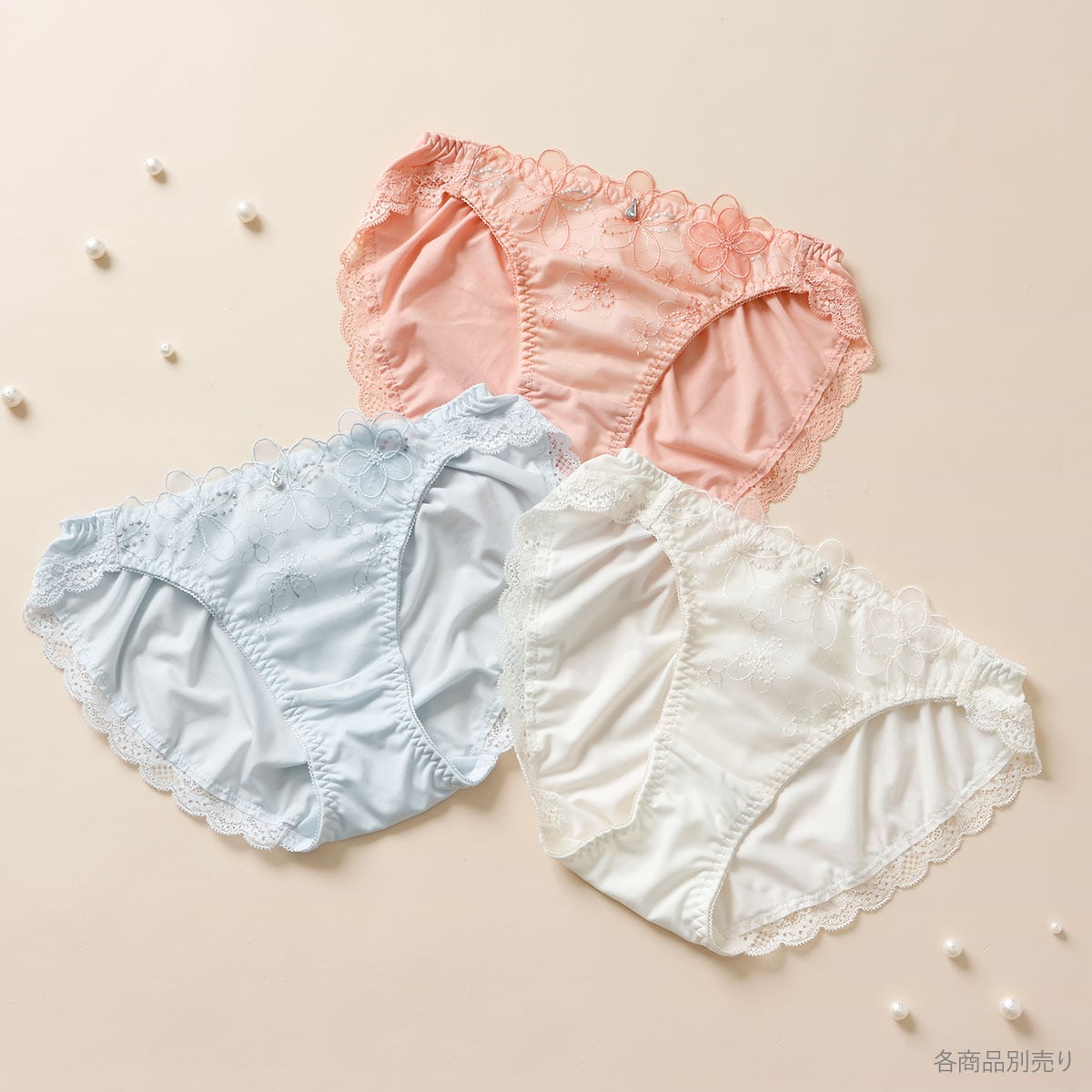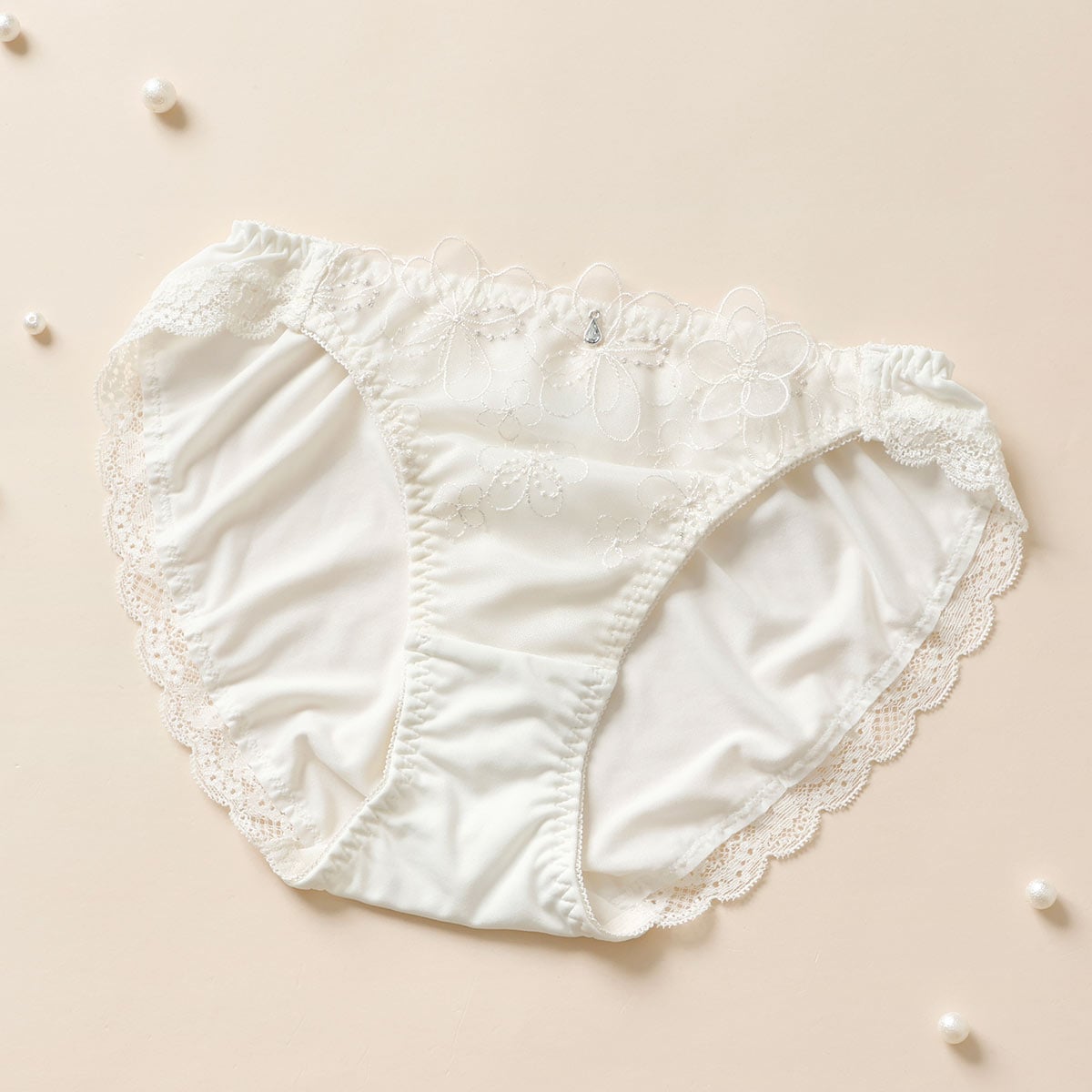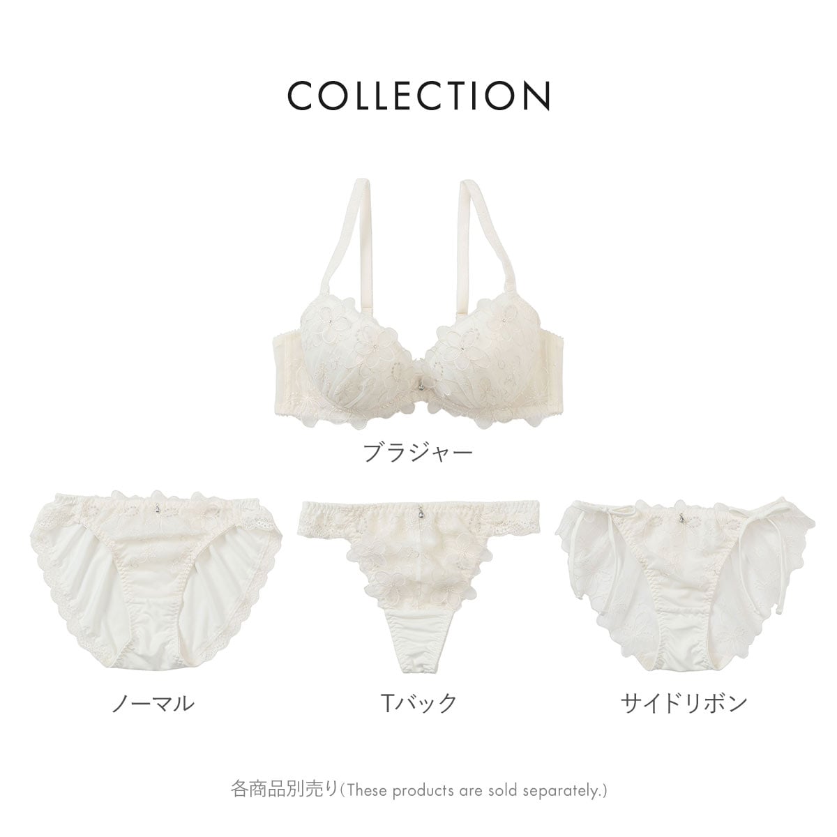 花柄レースに立体的なアップリケを添えて華やかに仕上げたシリーズ。