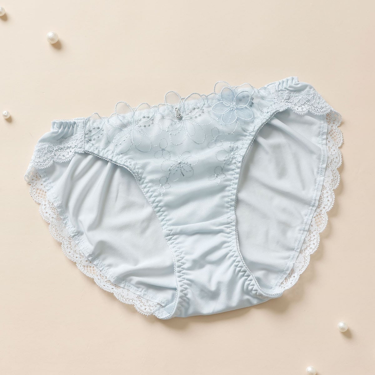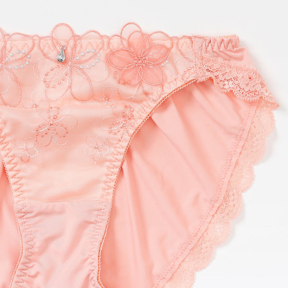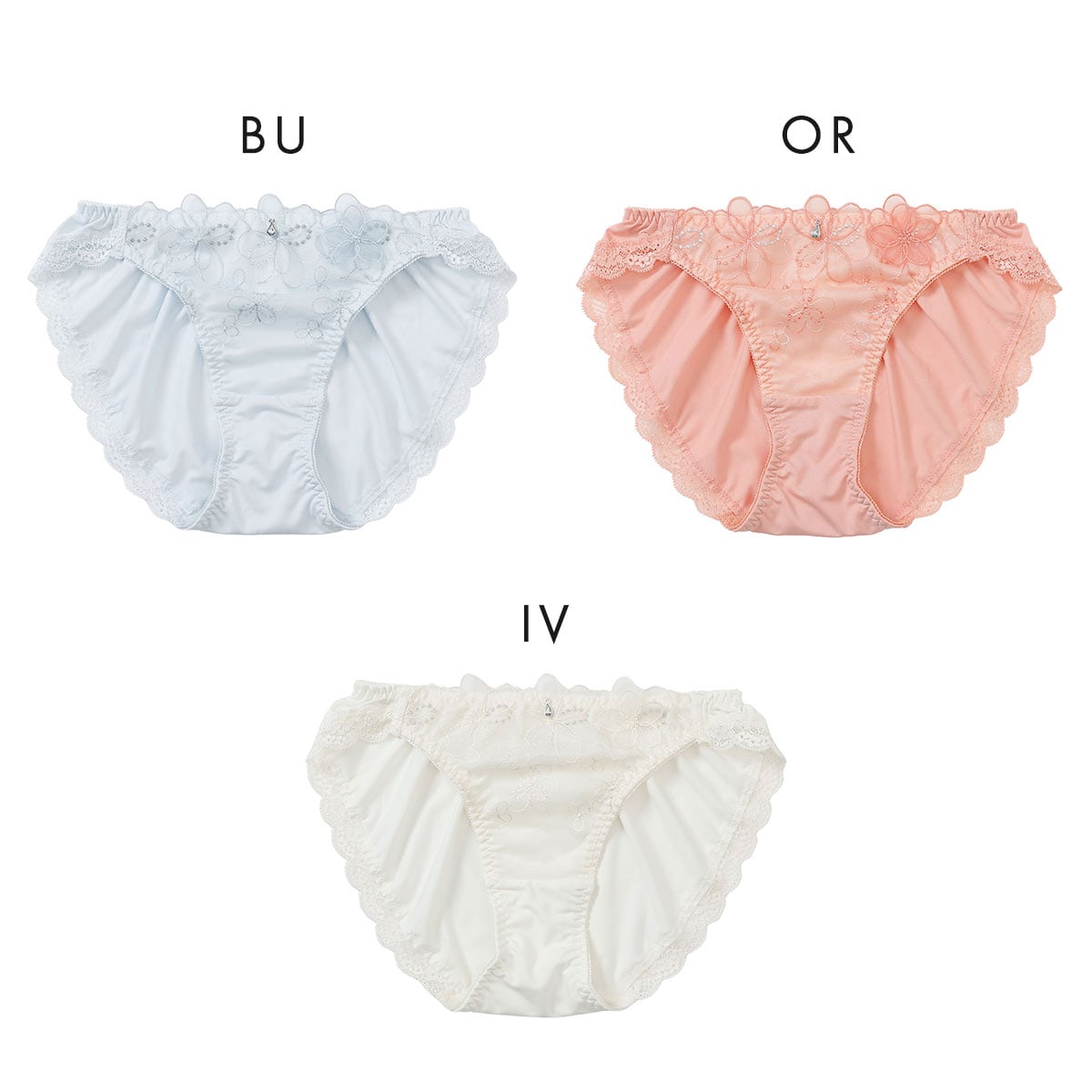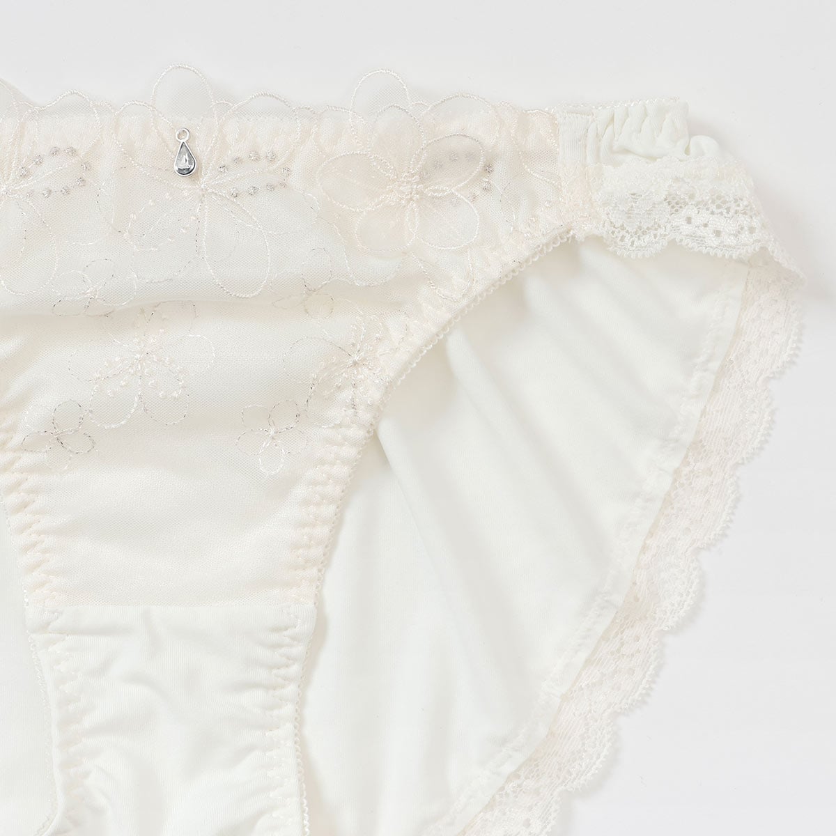 花柄レースに立体的なアップリケを添えて華やかに仕上げたシリーズ。