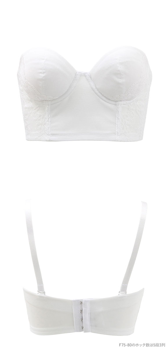 肩や背中のあいたドレスやアウターにおすすめの1/2カップ。ストラップ取りはずしOK&背中低めの設計です。